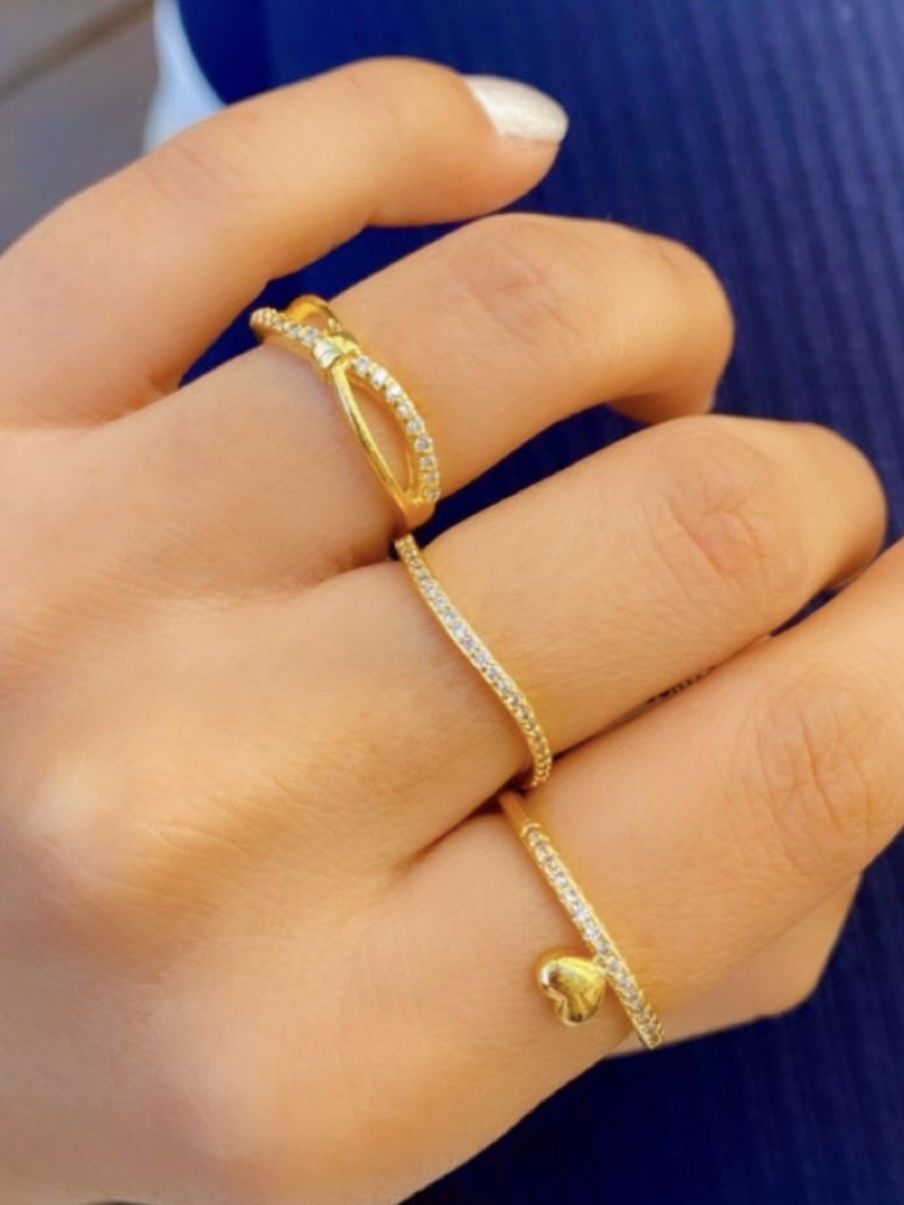 3. Anel Aparador de Aliança com Coração em Banho de Ouro