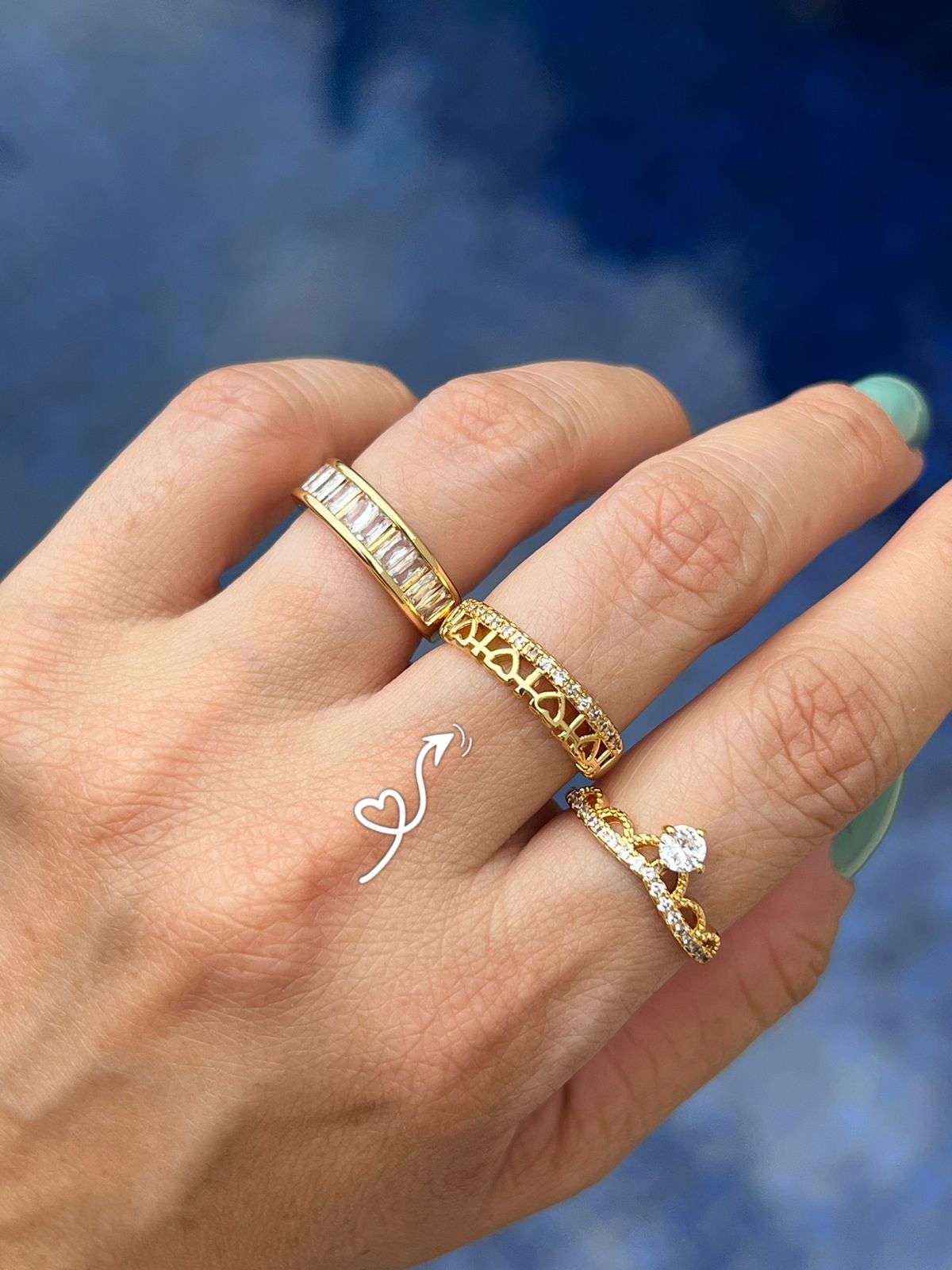 3. Anel Aparador de Aliança com Micro Zircônia e Coração Liso em Banho de Ouro