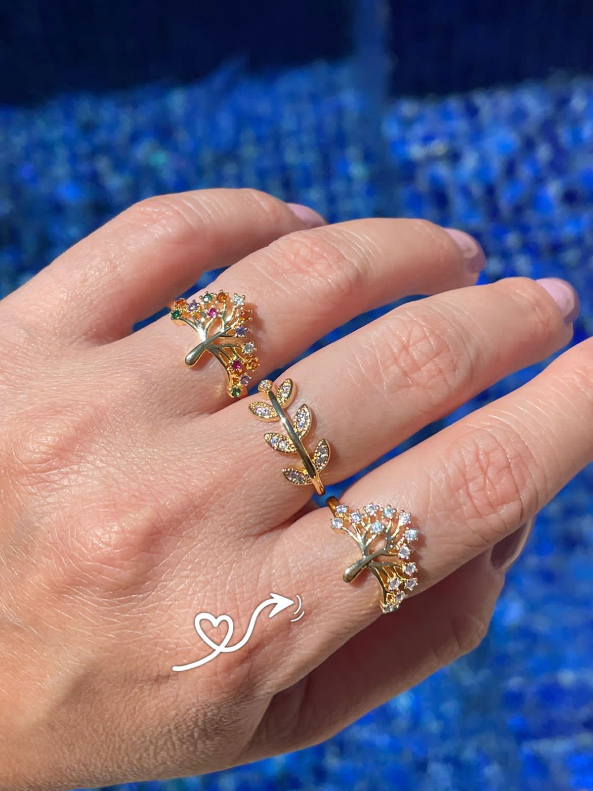 3. Anel Árvore da Vida Cristal em Banho de Ouro