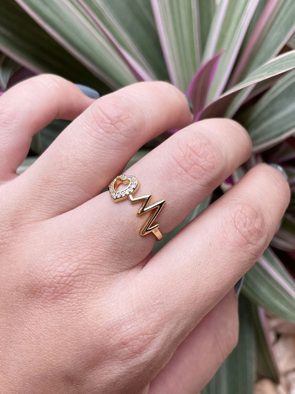 3. Anel com Coração Micro Zircônia e Batimento Cardíaco em Banho de Ouro