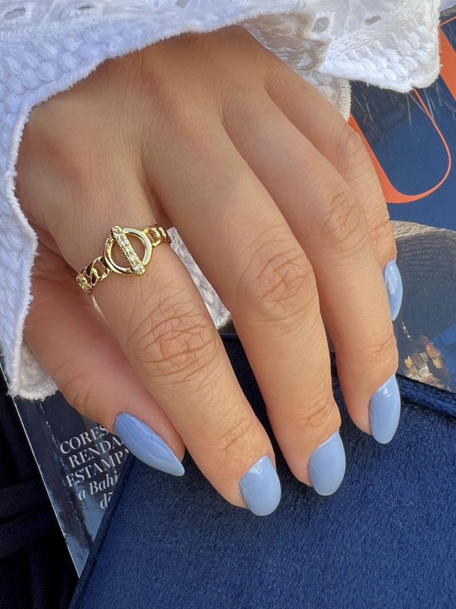 3. Anel Corrente Regulável com Zircônia Cristal em Banho de Ouro