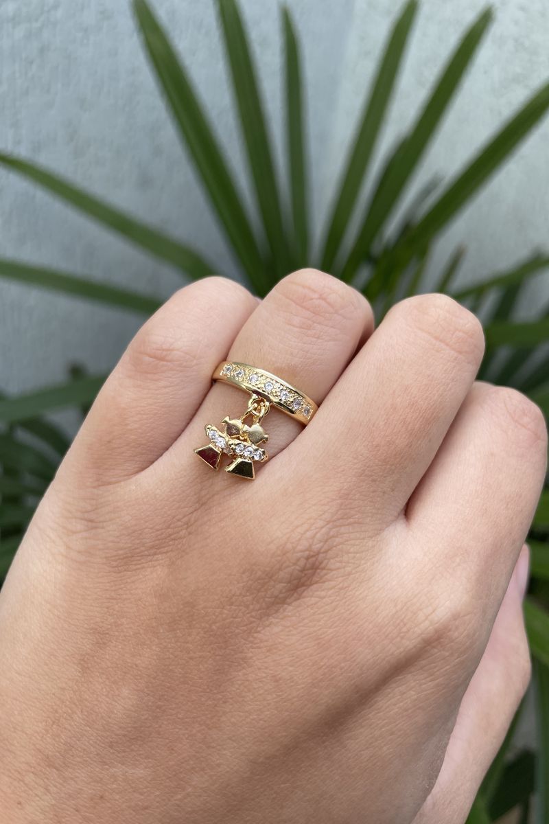 3. Anel Crianças ( Duas Meninas) com Zircônia Cristal em Banho de Ouro