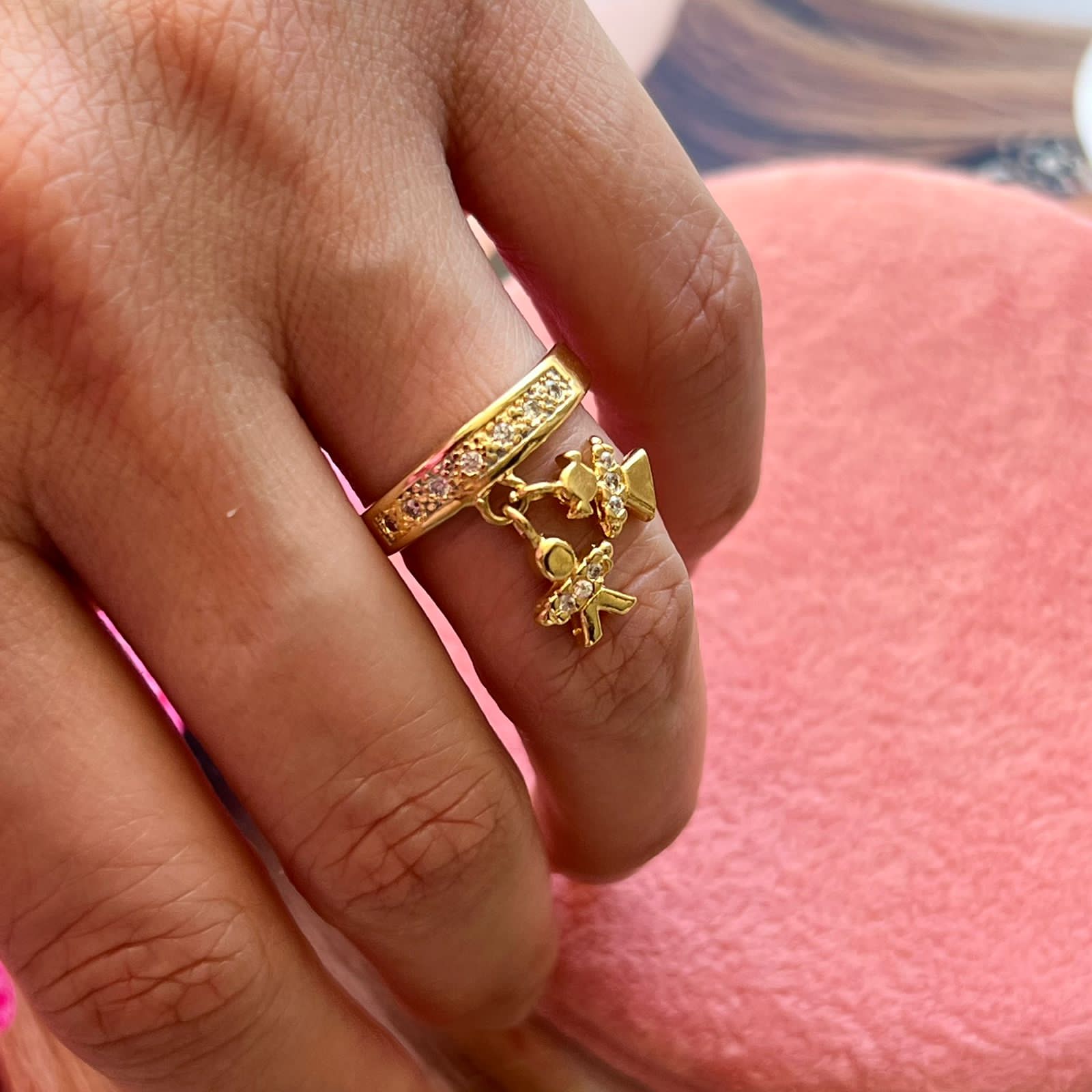 Anel Crianças (Casal) com Zircônia Cristal em Banho de Ouro