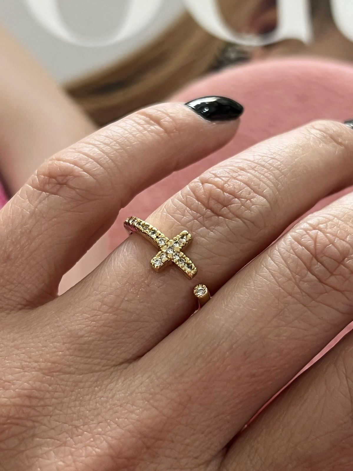 3. Anel Cruz Regulável com Zircônia Cristal em Banho de Ouro
