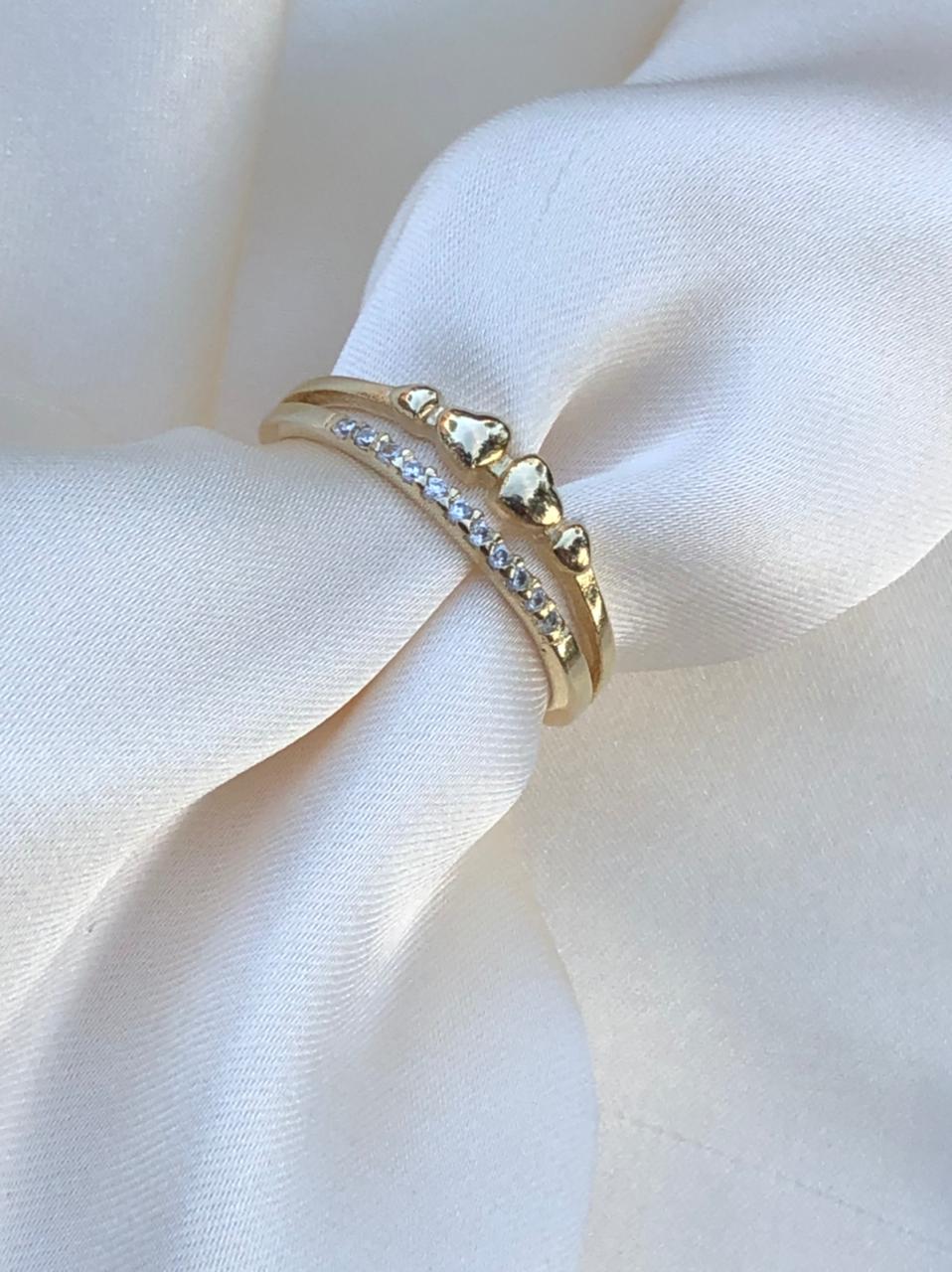 3. Anel Duplo com Micro Zircônia em Banho de Ouro