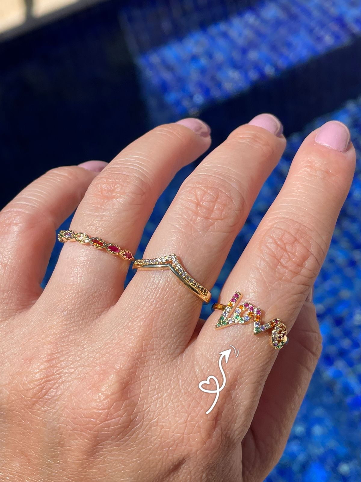 3. Anel Love Rainbow em Banho de Ouro