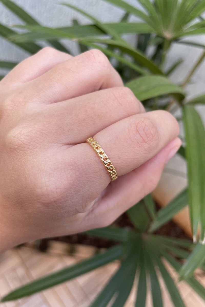 Anel Mini Corrente em Banho de Ouro : A1806O Facebook X Pinterest WhatsApp : - + : OK × : 1x R$ 0,00 : R$ 0,00 × : 15 : -Banho: Banho de Ouro 18K com 10 milésimos (Antialérgico) -Garantia: 1 ano Banho