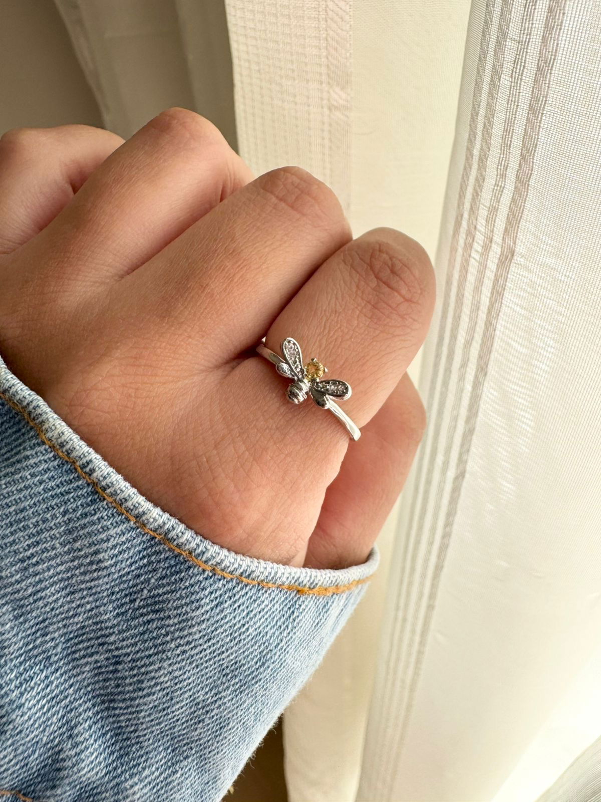 Anel Regulável Abelhinha com Zircônia Cristal e Citrino em Banho de Ródio Branco : A1989CR14 5.0 (2) Facebook X Pinterest WhatsApp 14 16 18 20 22 : - + : OK × 14 16 18 20 22 × : 1x R$ 0,00 : R$ 0,00 × : 14 : -Pedra: -Corrente: -Cor: -Banho: Banho de Ródio Branco (Antialérgico) -Garantia: 1 ano Banho e Zircônia