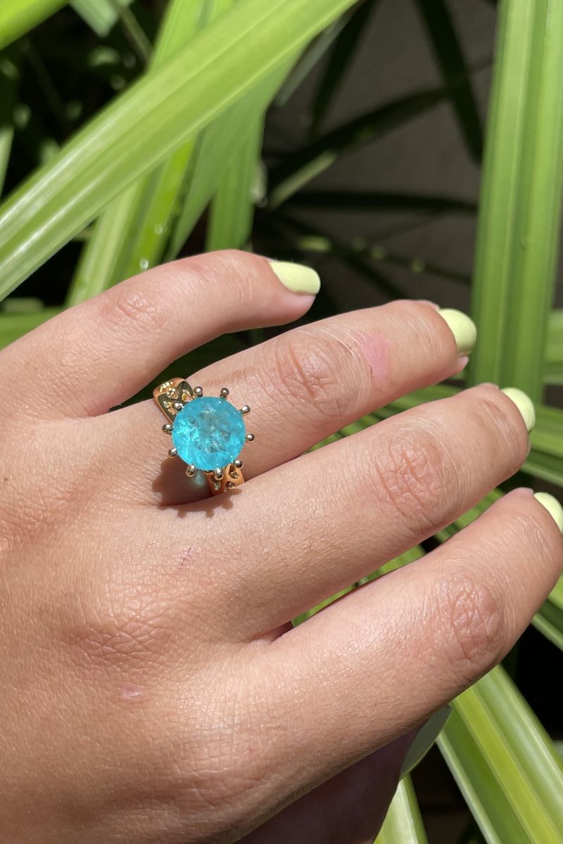 Anel Solitário com Fusion Azul em Banho de Ouro : A1037A16 Facebook X Pinterest WhatsApp : - + : OK × : 1x R$ 0,00 : R$ 0,00 × : 16 : -Pedra: 10mm -Cor: Fusion Azul -Corrente: -Banho: Banho de Ouro 18K com 10 (Antialérgico) -Garantia: 1 ano Banho e Zircônia