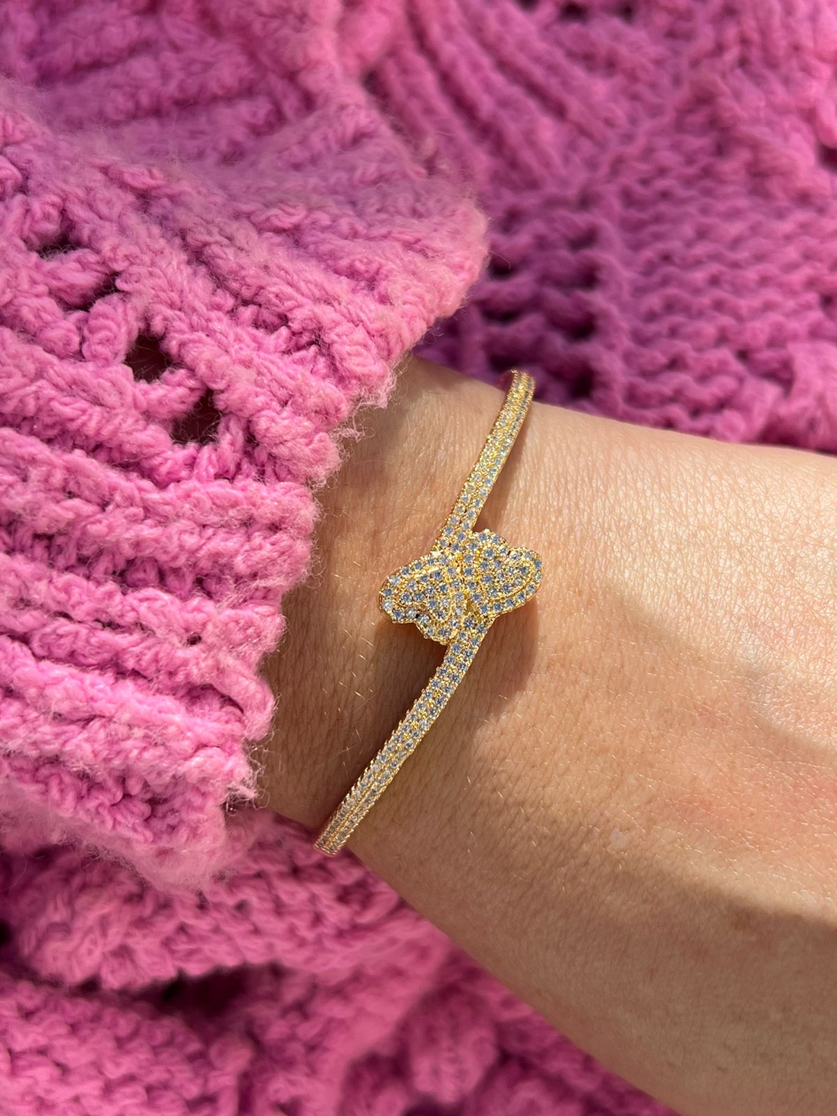 3. Bracelete com Dois Corações e Zircônia Cristal em Banho de Ouro