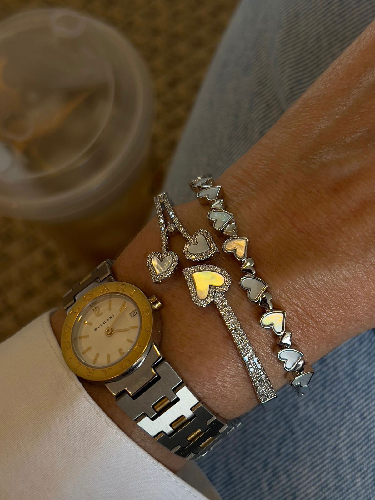 Bracelete com Três Coração Zircônia e Madrepérola em Banho de Ródio Branco : BRA0197 Facebook X Pinterest WhatsApp : - + : OK × : 1x R$ 0,00 : R$ 0,00 × : -Pedra: -Corrente: -Cor: -Banho: Banho de Ródio Branco (Antialérgico) -Garantia: 1 ano Banho e Zircônia