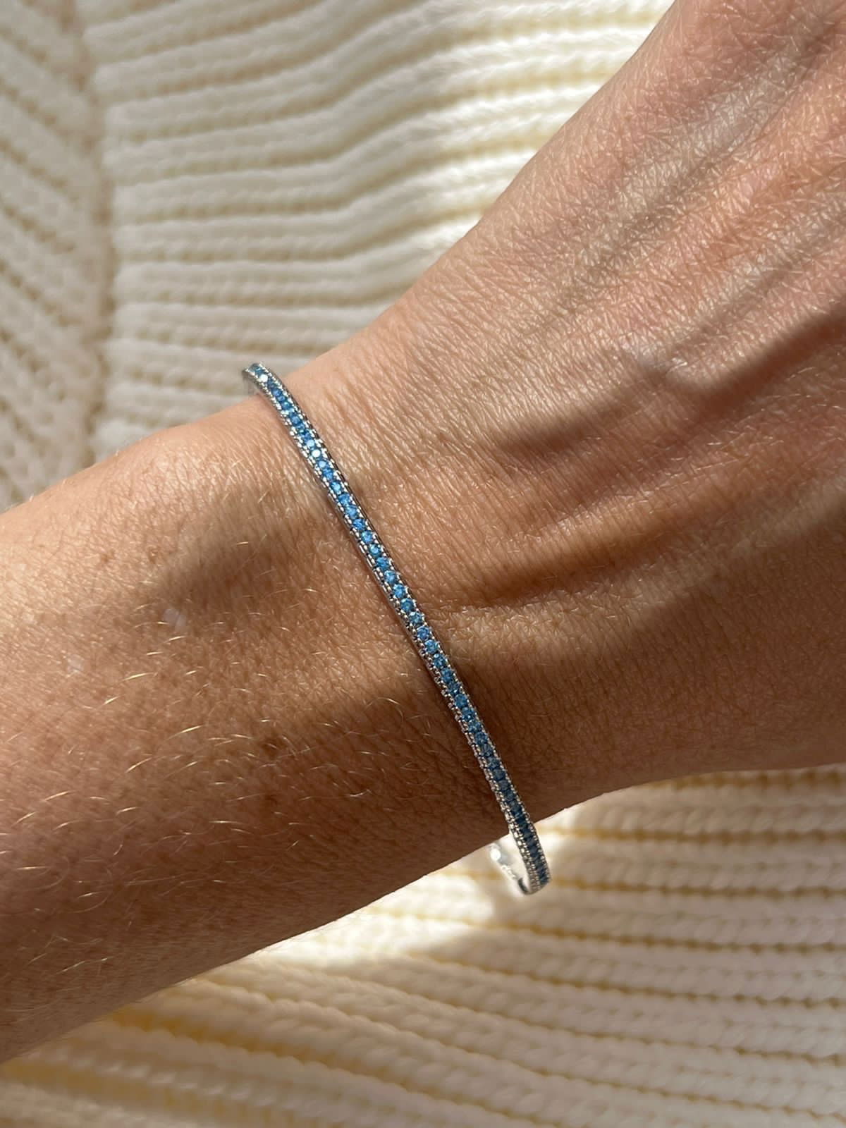 Bracelete Fino com Zircônia Azul em (Fecho Joia)Banho de Ródio Branco : BRA0175 Facebook X Pinterest WhatsApp : - + : OK × : 1x R$ 0,00 : R$ 0,00 × : -Pedra: -Corrente: -Cor: -Banho: Banho de Ródio Branco (Antialérgico) -Garantia: 1 ano Banho e Zircônia
