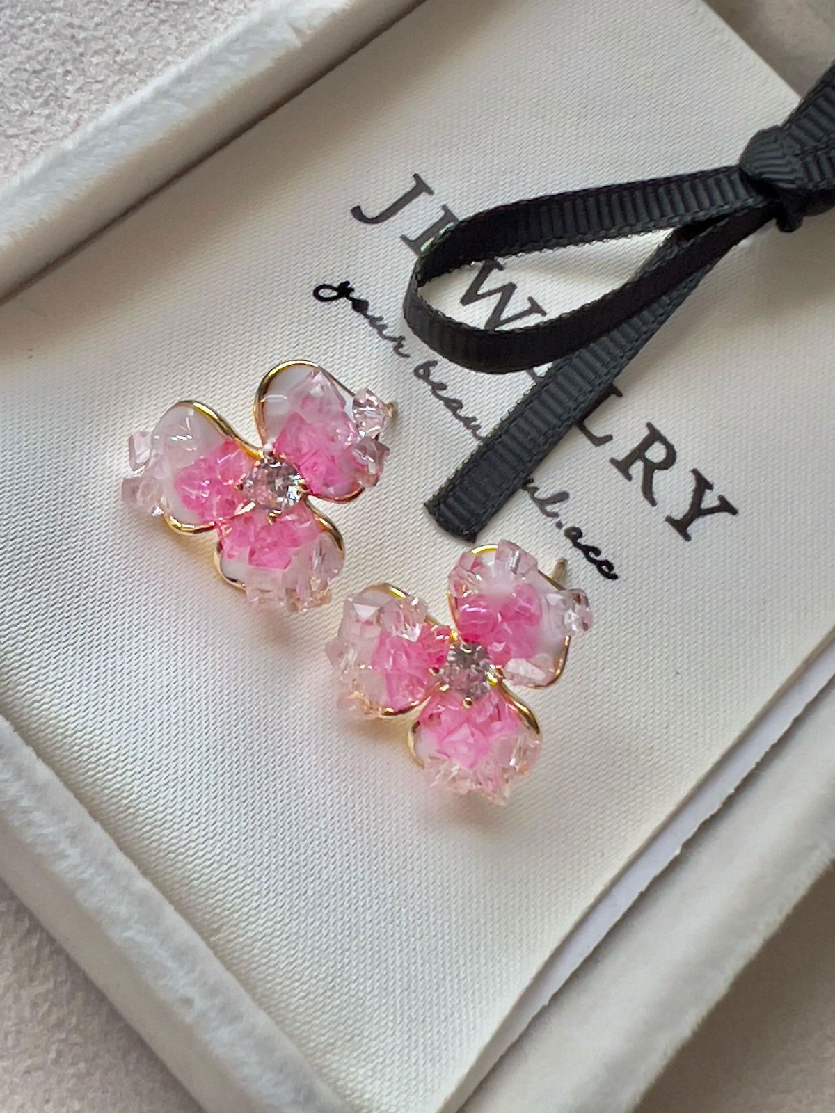 2. Brinco Flor Pedra de Sal Rosa/Branco em Banho de Ouro