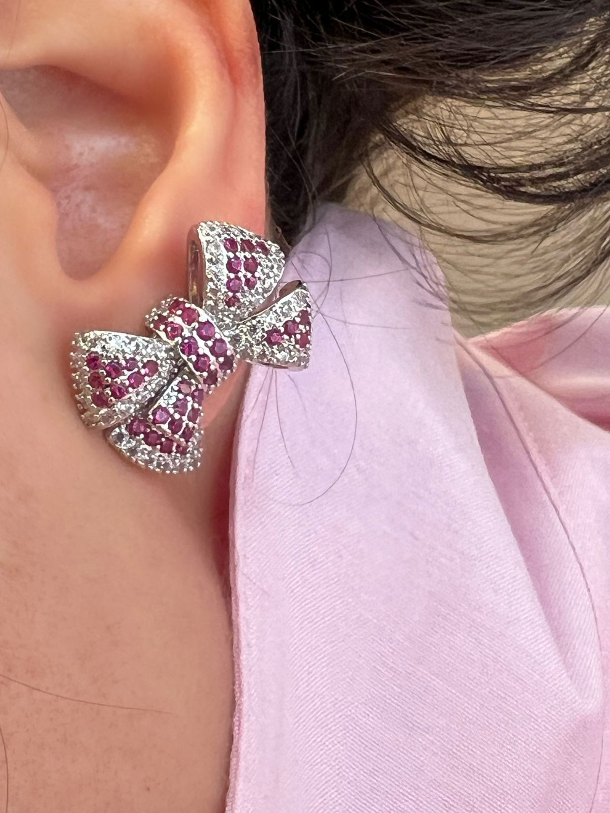 Brinco Laço com Zircônia Cristal e Pink em Banho de Ródio Branco : BR2118 Facebook X Pinterest WhatsApp : - + : OK × : 1x R$ 0,00 : R$ 0,00 × : -Pedra: -Corrente: -Cor: -Banho: Banho de Ródio Branco (Antialérgico) -Garantia: 1 ano Banho e Zircônia