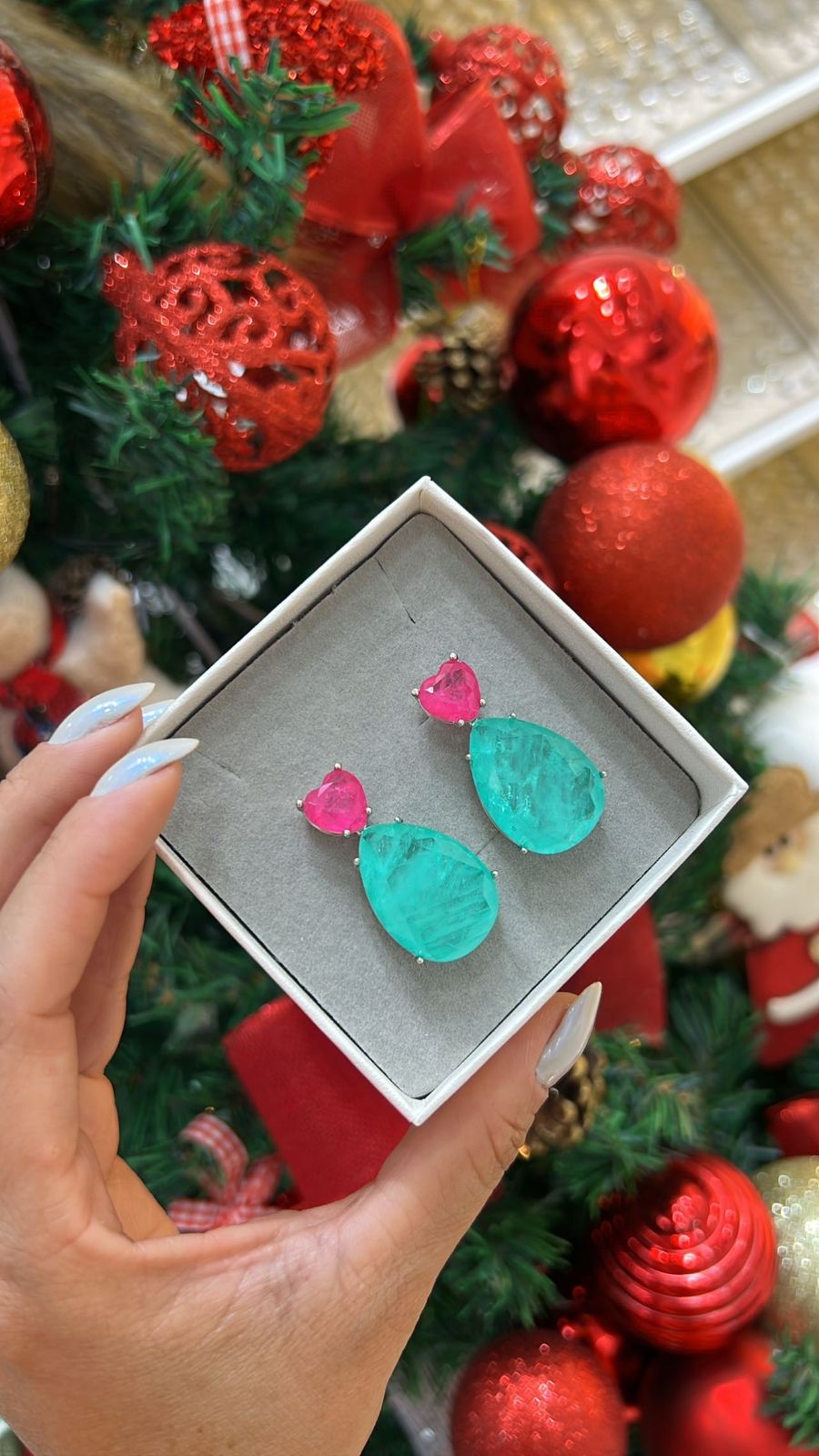 -Pedra: 10mm / 18x25mmFusion Esmeralda Colombiana e Fuscia