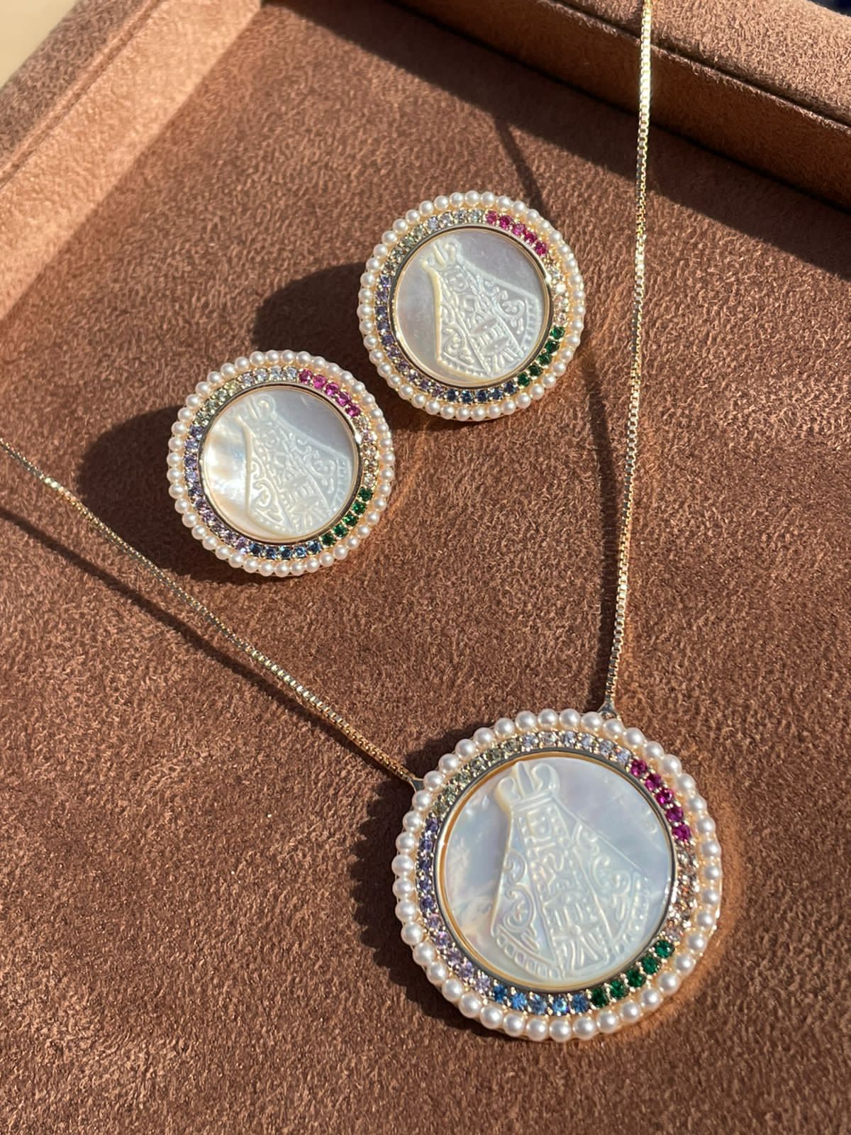 Brinco Nossa Senhora Aparecida com Zircônia Colorida e Pérola em Banho de Ouro : BR692 Facebook X Pinterest WhatsApp : - + : OK × : 1x R$ 0,00 : R$ 0,00 × : -Pedra: -Cor: -Banho: Banho de Ouro 18K com 5 milésimos (Antialérgico) -Garantia: 1 ano Banho e Zircônia