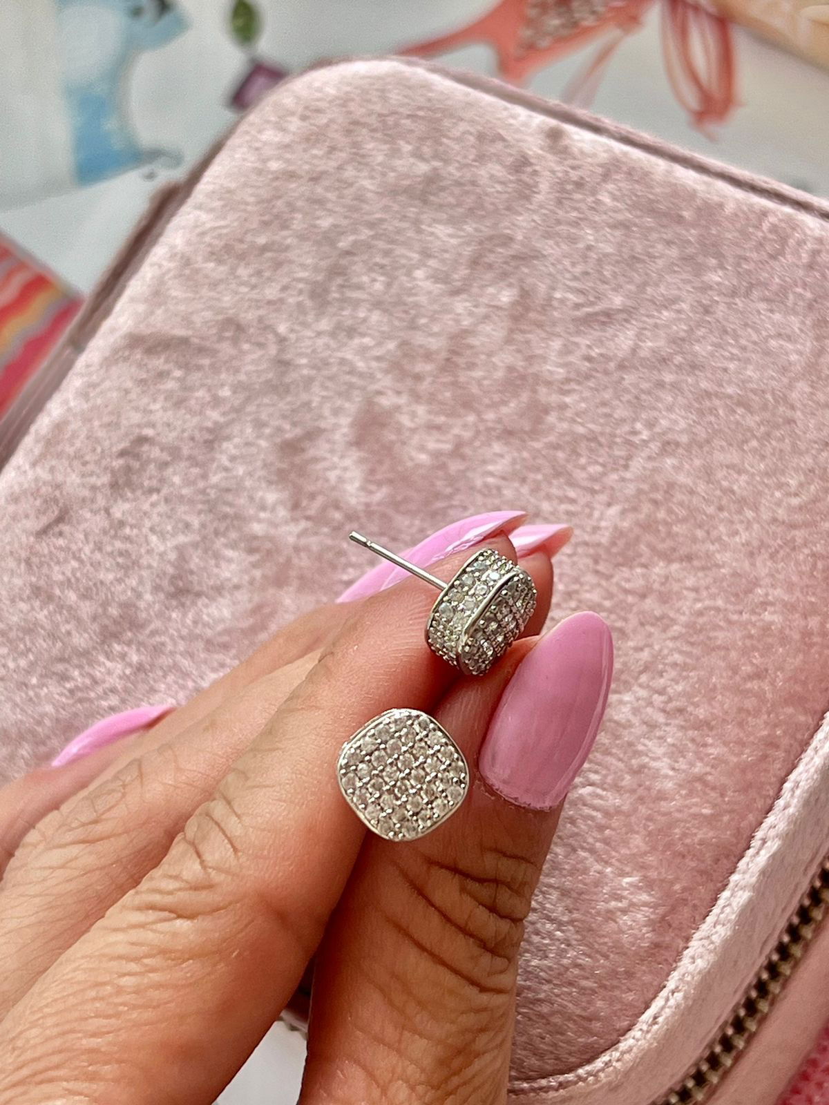 3. Brinco Pavê Quadrado com Zircônia Cristal em Banho de Ródio Branco