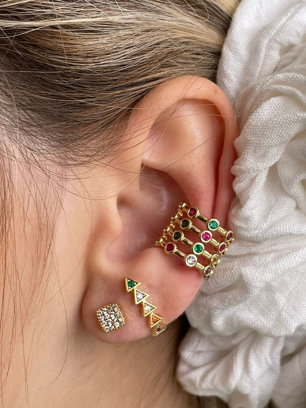 3. Brinco Quadradinho Pavê em Banho de Ouro