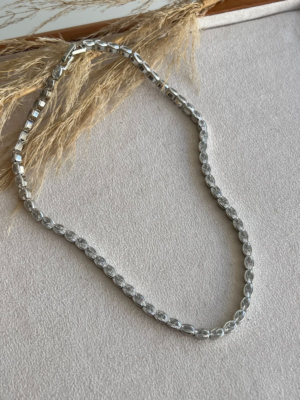 Choker Oval Cristal Maleável com Fecho Joia em Banho de Ródio Branco : Choker461 Facebook X Pinterest WhatsApp : - + : OK × : 1x R$ 0,00 : R$ 0,00 × : -Pedra: 4x6mm -Cor: Zircônia Cristal -Corrente: 40cm -Banho: Banho de Ródio Branco (Antialérgico) -Garantia: 1 ano Banho e Zircônia
