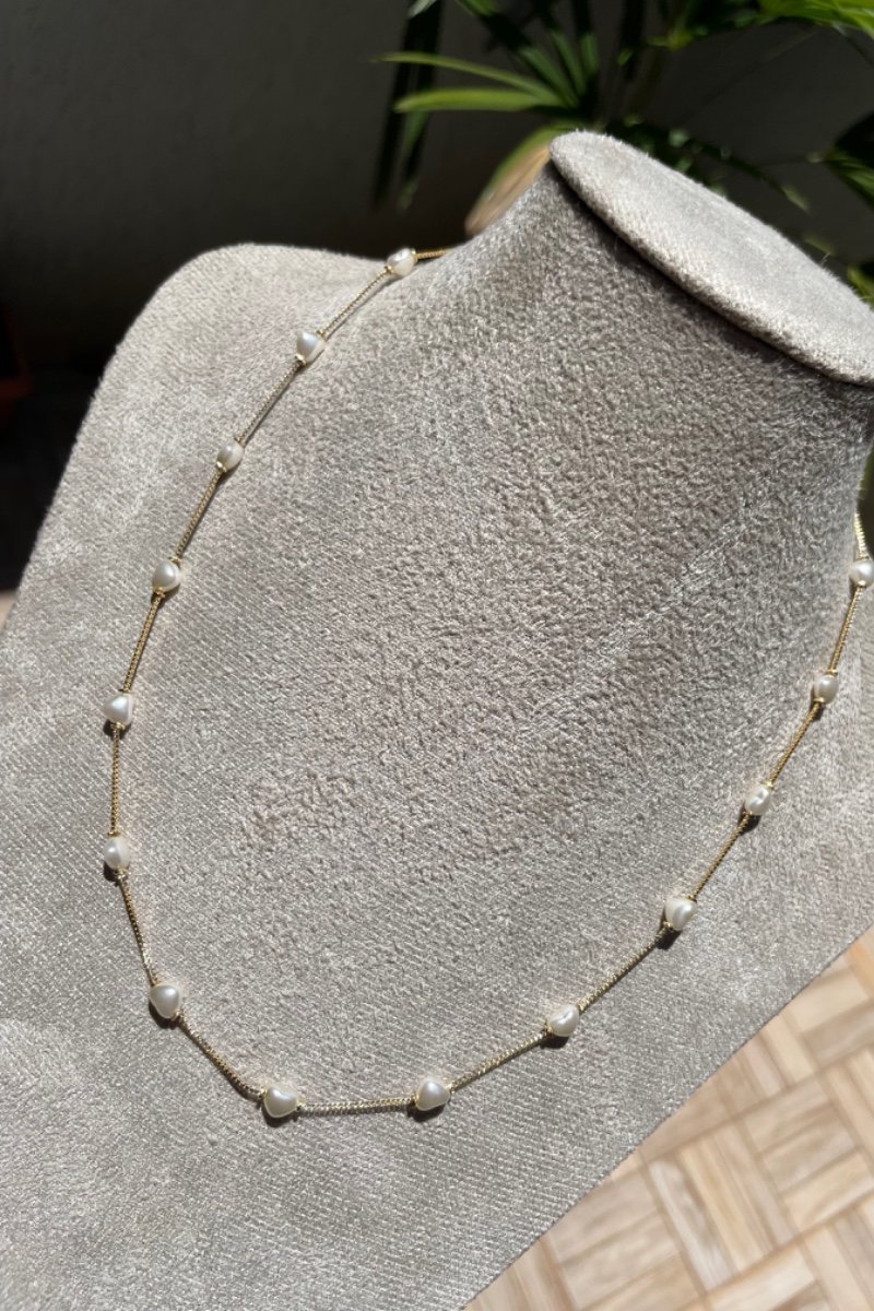 Colar com Pérola de Coração em Banho de Ouro : Colar077 Facebook X Pinterest WhatsApp : - + : OK × : 1x R$ 0,00 : R$ 0,00 × : -Tamanho : 50cm -Banho: Banho de Ouro 18K com 10 milésimos (Antialérgico) -Garantia: 1 ano Banho e Zircônia