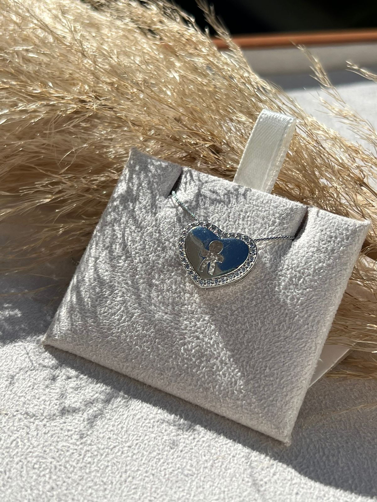 2. Colar Coração com Menino em Banho de Ródio Branco