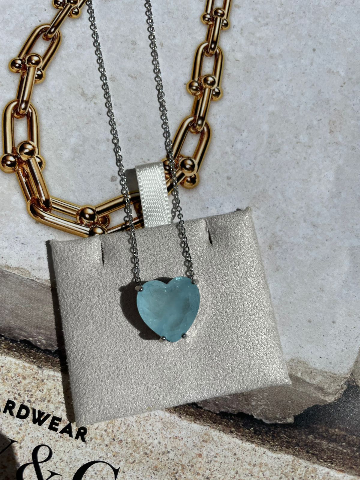 Colar Coração Fusion Água-marinha em Banho de Ródio Branco