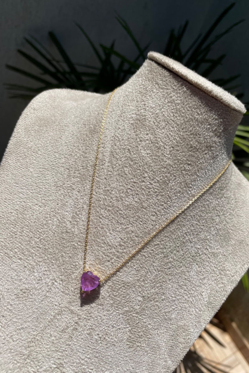 Colar Coração Fusion Violeta em Banho de Ouro : Colar167 Facebook X Pinterest WhatsApp : - + : OK × : 1x R$ 0,00 : R$ 0,00 × : -Pedra: 10x10mm -Cor: Fusion -Banho: Banho de Ouro 18K com 10 milésimos (Antialérgico) -Garantia: 1 ano Banho e Zircônia