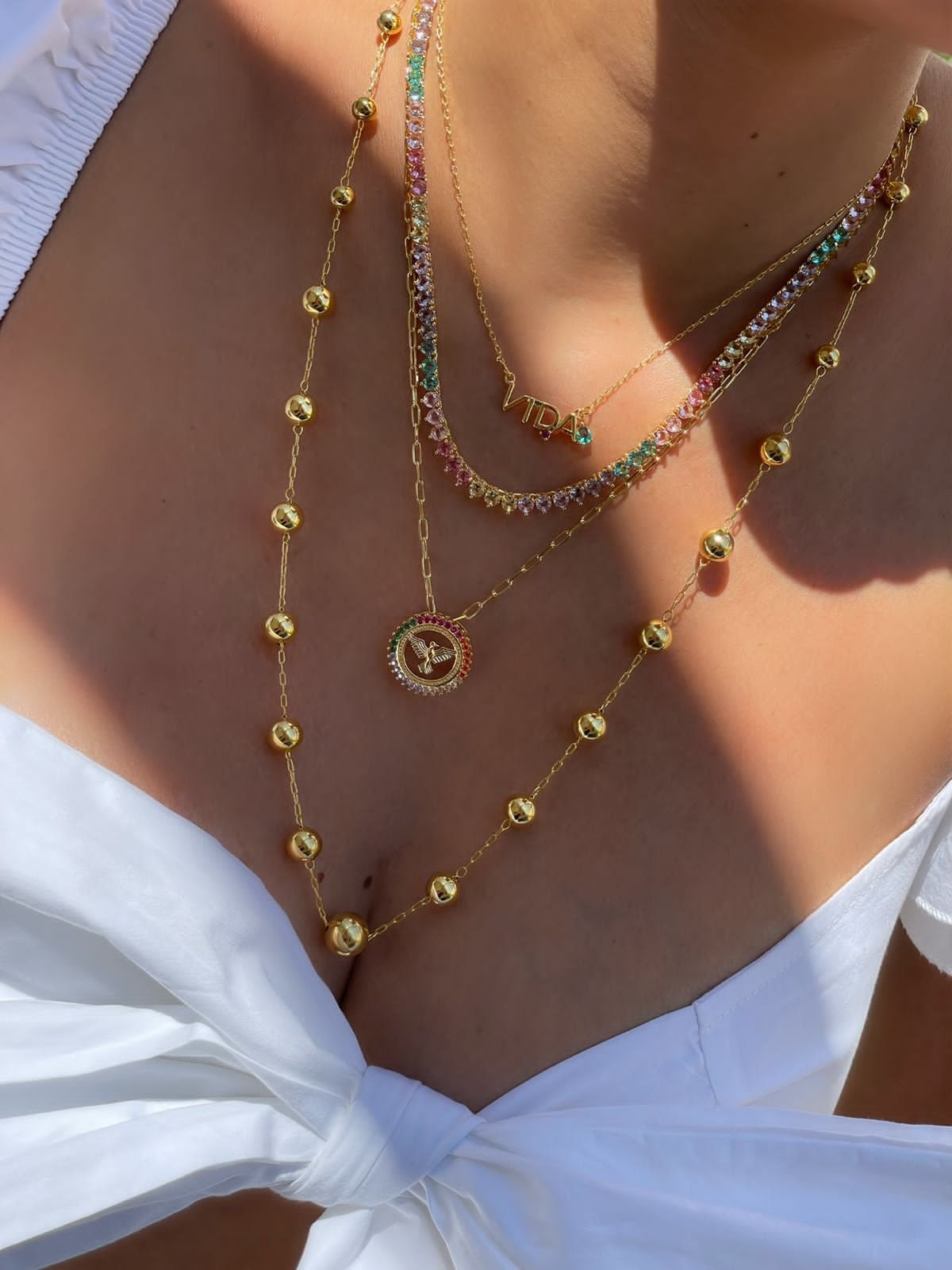 2. Colar Espírito Santo Colorido em Banho de Ouro