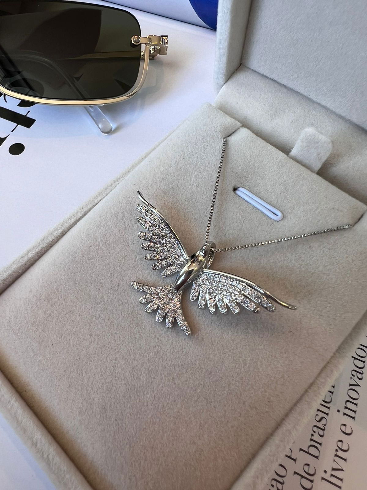 Colar Espírito Santo com Zircônia em Banho de Ródio Branco