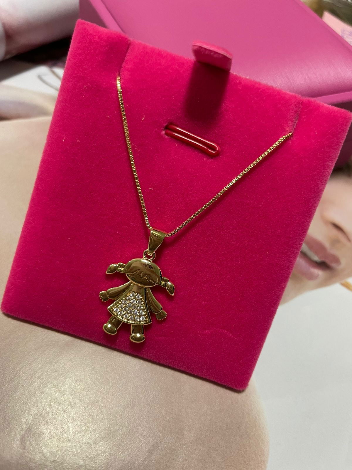 2. Colar Filhos “ Menina” com Zircônia Cristal em Banho de Ouro