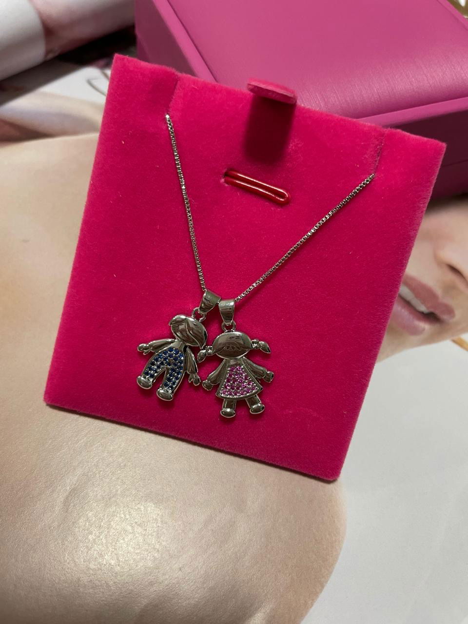 Colar Filhos “Casal” com Zircônia Colorida em Banho de Ródio Branco : Colar696 Facebook X Pinterest WhatsApp : - + : OK × : 1x R$ 0,00 : R$ 0,00 × : -Pedra: -Cor: -Corrente: -Banho: Banho de Ródio Branco (Antialérgico) -Garantia: 1 ano Banho e Zircônia