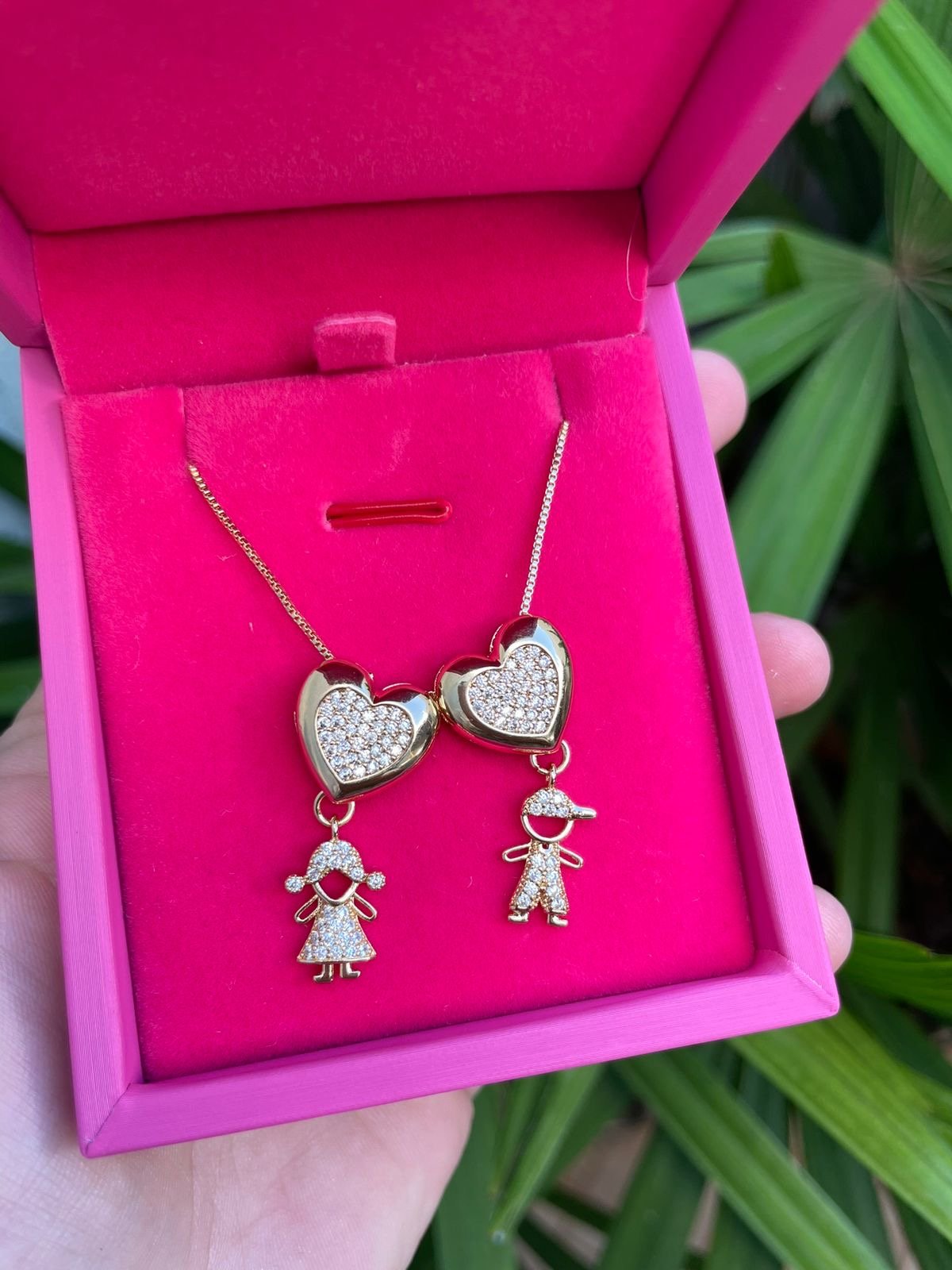 Colar Filhos “Casal” em Banho de Ouro : Colar722 Facebook X Pinterest WhatsApp : - + : OK × : 1x R$ 0,00 : R$ 0,00 × : -Pedra: -Cor: -Corrente: -Banho: Banho de Ouro 18K com 10 Milésimos (Antialérgico) -Garantia: 1 ano Banho e Zircônia