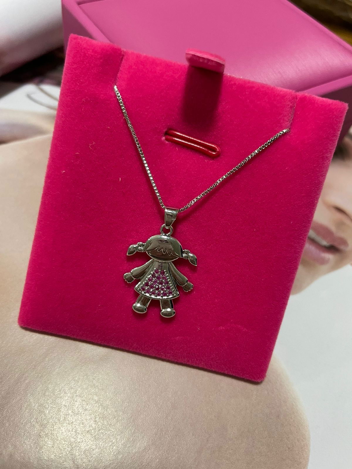 Colar Filhos “Menina” com Zircônia Pink em Banho de Ródio Branco : Colar693 Facebook X Pinterest WhatsApp : - + : OK × : 1x R$ 0,00 : R$ 0,00 × : -Pedra: -Corrente: 45cm + 5cm -Cor: -Banho: Banho de Ródio Branco (Antialérgico) -Garantia: 1 ano Banho e Zircônia