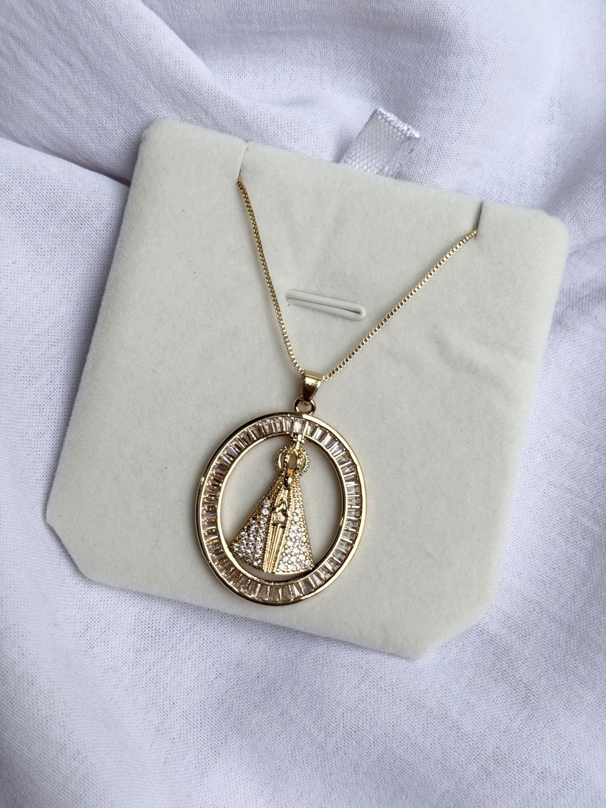 2. Colar Nossa Senhora Ap. com Zircônia Cristal em Banho de Ouro