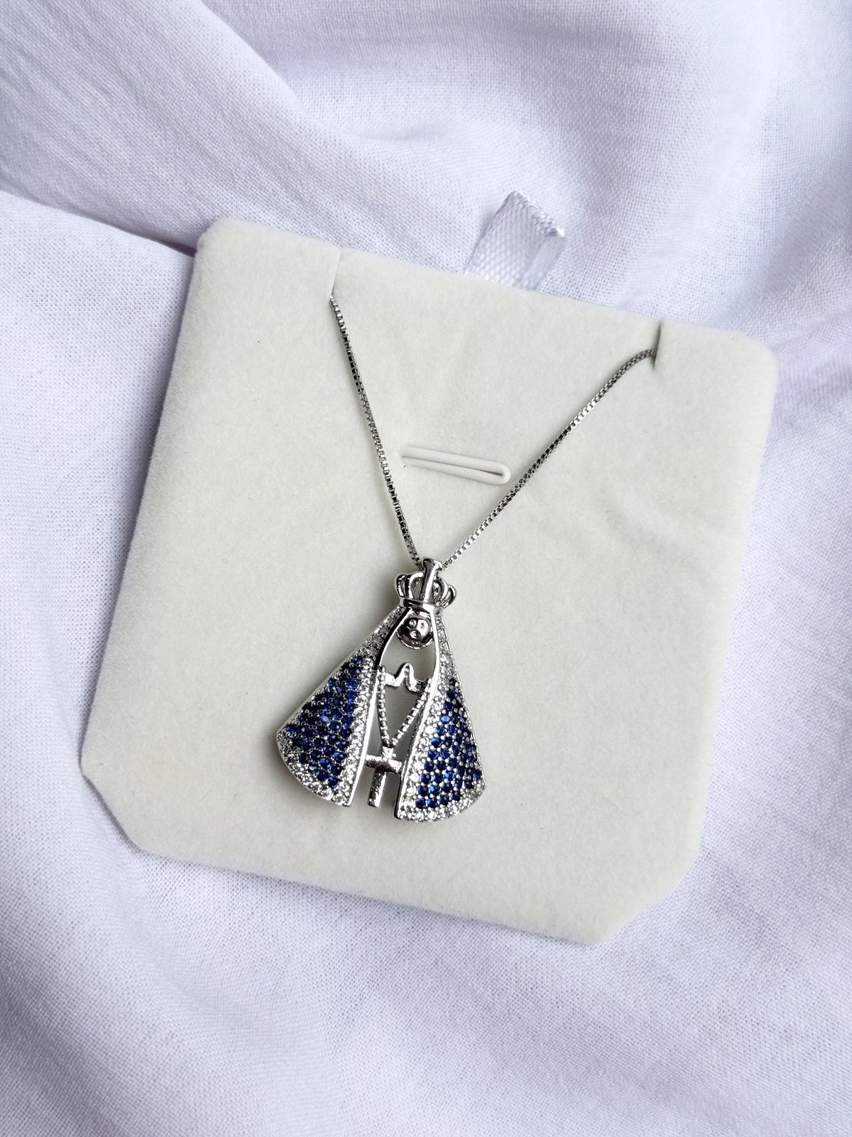 Colar Nossa Senhora Ap com Zircônia Cristal e Azul em Banho de Ródio Branco : Colar758 Facebook X Pinterest WhatsApp : - + : OK × : 1x R$ 0,00 : R$ 0,00 × : -Pedra: -Corrente: 45cm + 5cm -Cor: -Banho: Banho de Ródio Branco (Antialérgico) -Garantia: 1 ano Banho e Zircônia