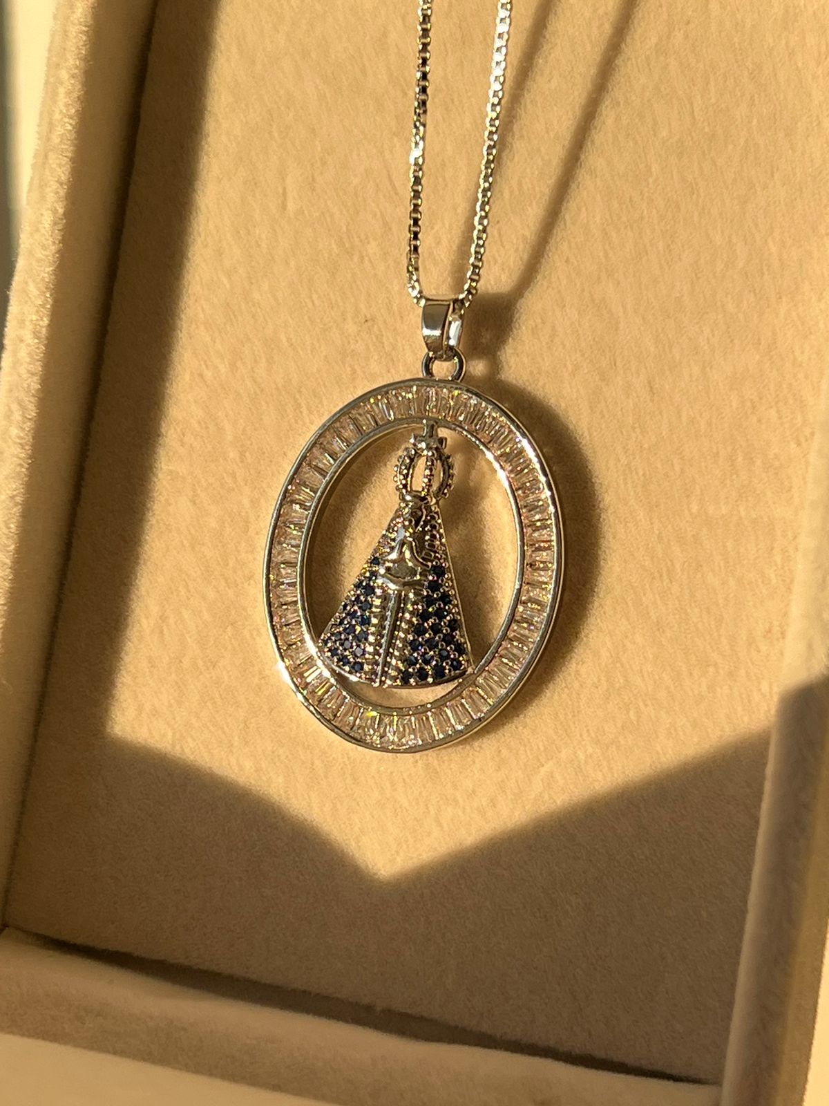 Colar Nossa Senhora Aparecida em Banho de Ródio Branco : Colar708 Facebook X Pinterest WhatsApp : - + : OK × : 1x R$ 0,00 : R$ 0,00 × : -Pedra: -Corrente: 45cm + 5cm extensor -Cor: -Banho: Banho de Ródio Branco (Antialérgico) -Garantia: 1 ano Banho e Zircônia