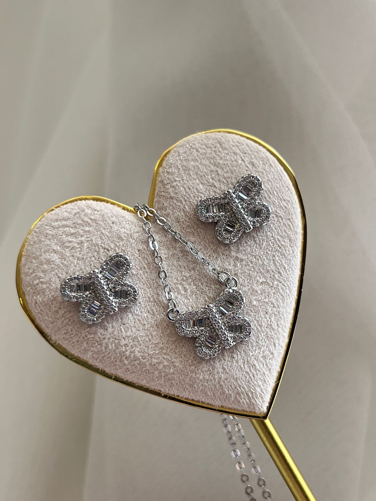 Conjunto Borboleta com Zircônia Cristal em Banho de Ródio Branco : Cj608 Facebook X Pinterest WhatsApp : - + : OK × : 1x R$ 0,00 : R$ 0,00 × : -Pedra: -Corrente: 45cm + 5cm estensor -Cor: -Banho: Banho de Ródio Branco (Antialérgico) -Garantia: 1 ano Banho e Zircônia