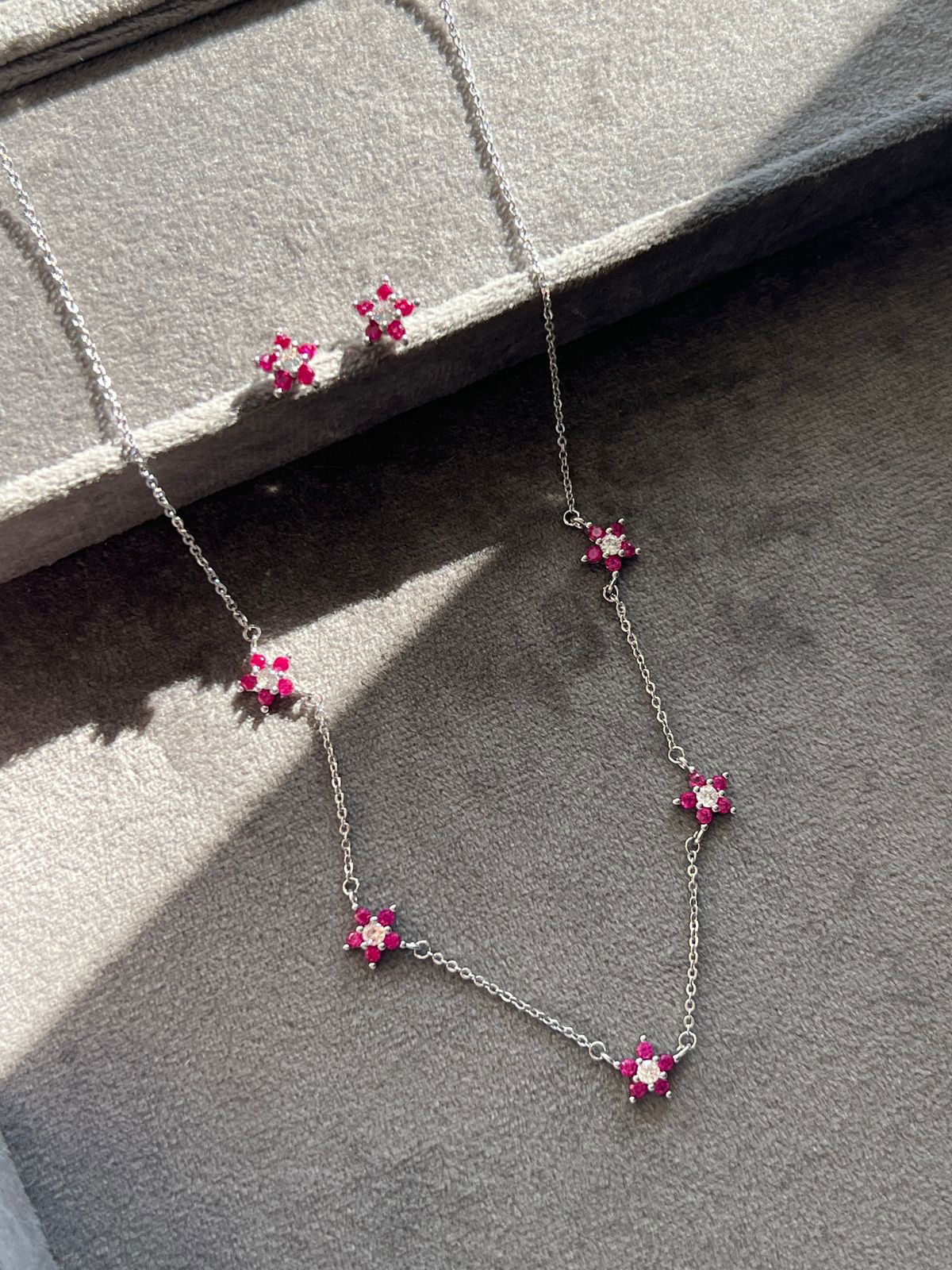 Conjunto com Flores Zircônia Cristal e Pink em Banho de Ródio Branco : Cj767 Facebook X Pinterest WhatsApp : - + : OK × : 1x R$ 0,00 : R$ 0,00 × : -Pedra: -Corrente: -Cor: -Banho: Banho de Ródio Branco (Antialérgico) -Garantia: 1 ano Banho e Zircônia