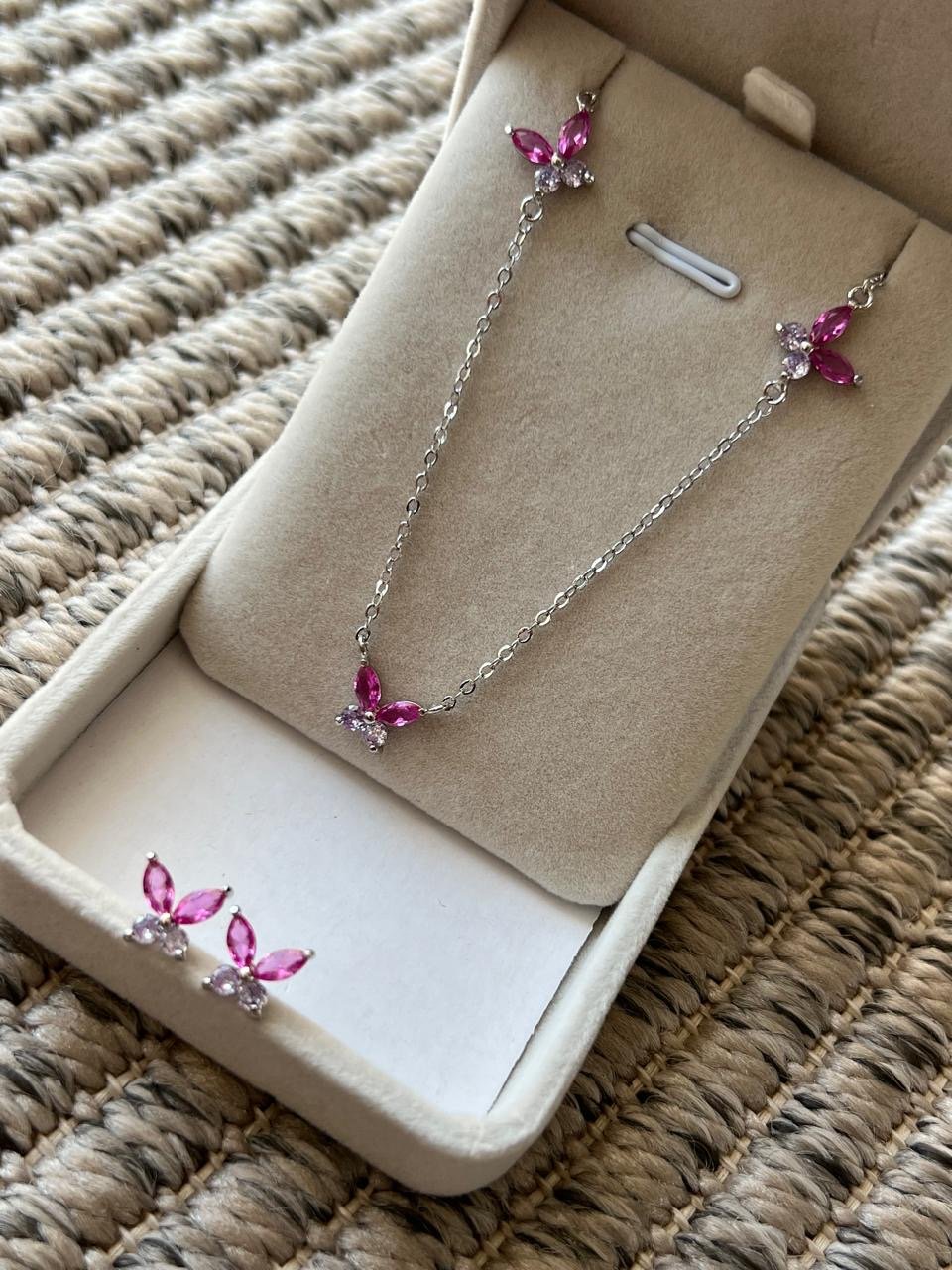 Conjunto com Mini Borboleta Pink e Lilás em Banho de Ródio Branco : Cj572 Facebook X Pinterest WhatsApp : - + : OK × : 1x R$ 0,00 : R$ 0,00 × : -Pedra: 2.5/ 2.5 -Corrente: 45cm + 5cm -Cor: -Banho: Banho de Ródio Branco (Antialérgico) -Garantia: 1 ano Banho e Zircônia