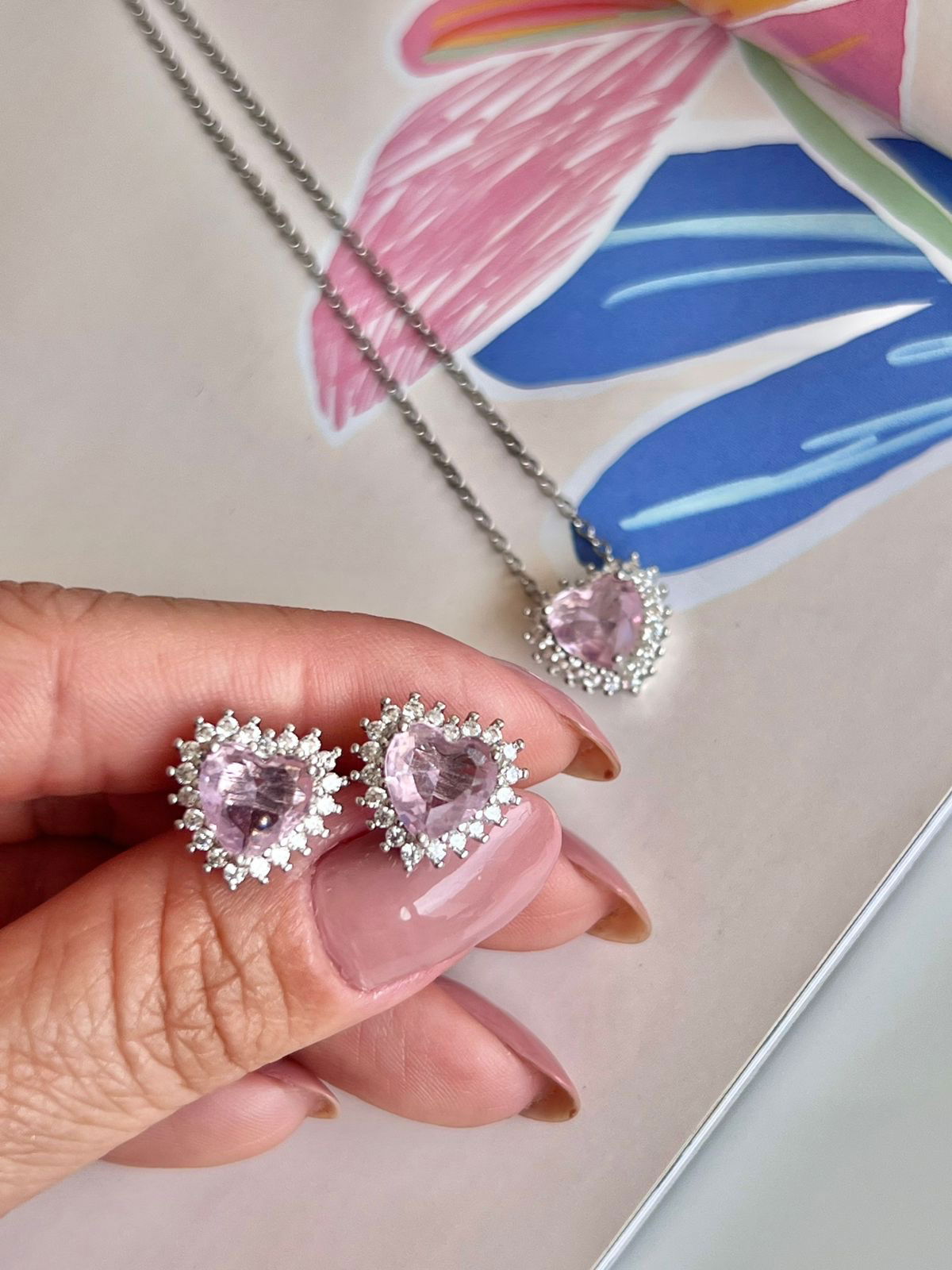 Conjunto Coração com Zircônia Cristal e Rosa em Banho de Ródio Branco : Cj666 5.0 (1) Facebook X Pinterest WhatsApp : - + : OK × : 1x R$ 0,00 : R$ 0,00 × : -Pedra: -Corrente: 45cm + 5cm -Cor: -Banho: Banho de Ródio Branco (Antialérgico) -Garantia: 1 ano Banho e Zircônia