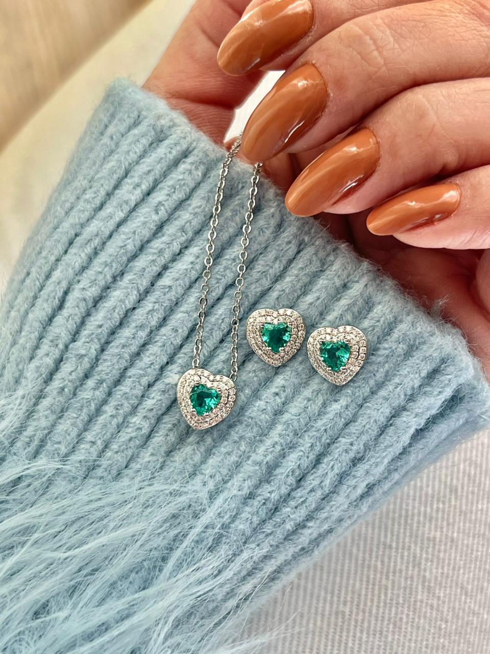 Conjunto Coração com Zircônia Cristal e Turmalina em Banho de Ródio Branco : Cj758 Facebook X Pinterest WhatsApp : - + : OK × : 1x R$ 0,00 : R$ 0,00 × : -Pedra: -Corrente: 45cm + 5cm -Cor: -Banho: Banho de Ródio Branco (Antialérgico) -Garantia: 1 ano Banho e Zircônia