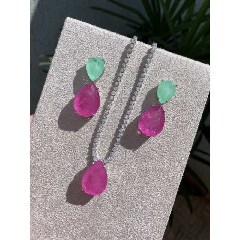 -Cor: Zircônia Cristal e Fusion Verde Claro e Fuscia