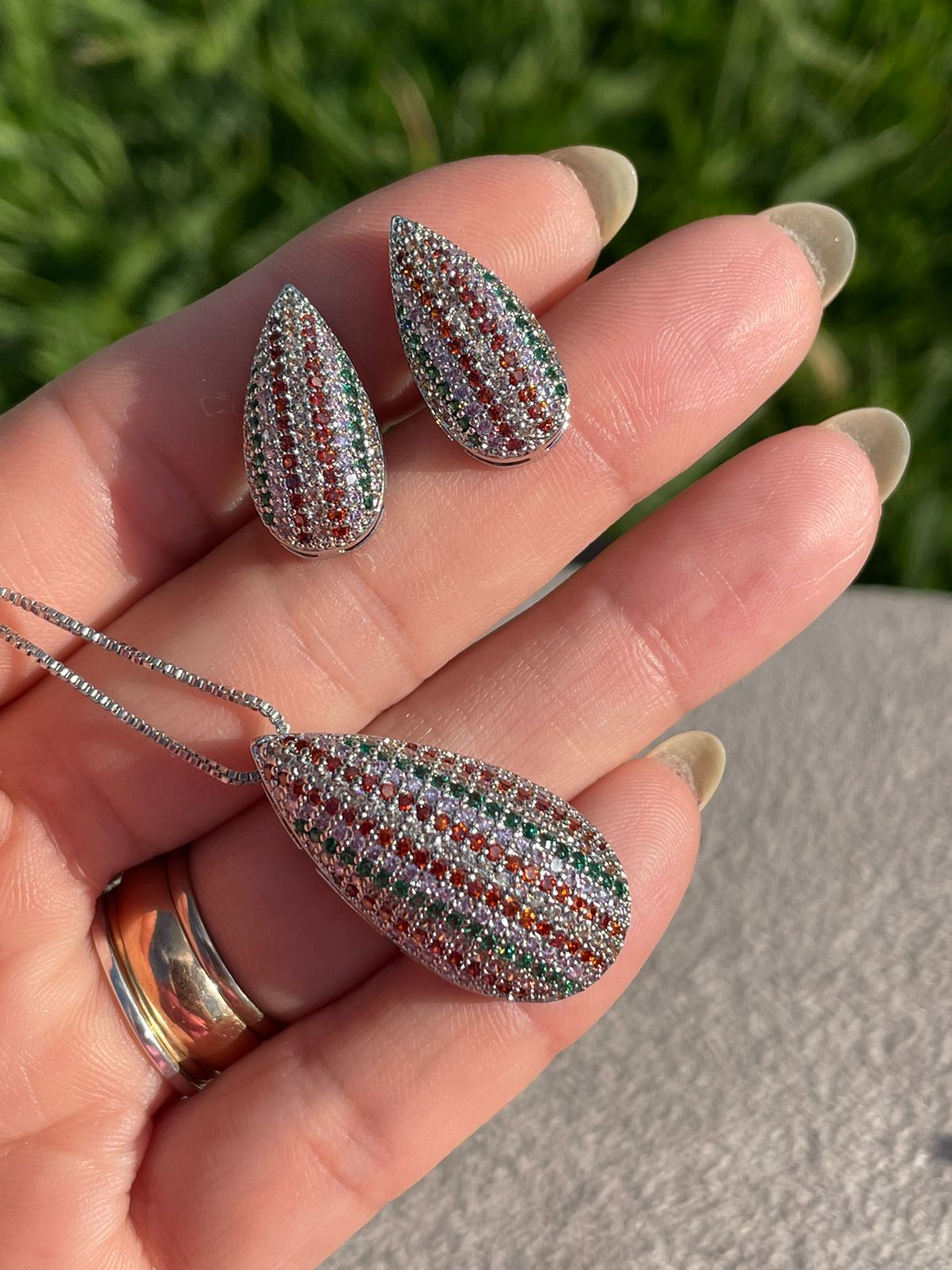 Conjunto Gota com Zircônia Colorida em Ródio Branco : Cj0107 Facebook X Pinterest WhatsApp : - + : OK × : 1x R$ 0,00 : R$ 0,00 × : -Pedra: 1.25mm -Cor: Zircônia Colorida -Banho: Banho de Ródio Branco (Antialérgico) -Garantia: 1 ano Banho e Zircônia