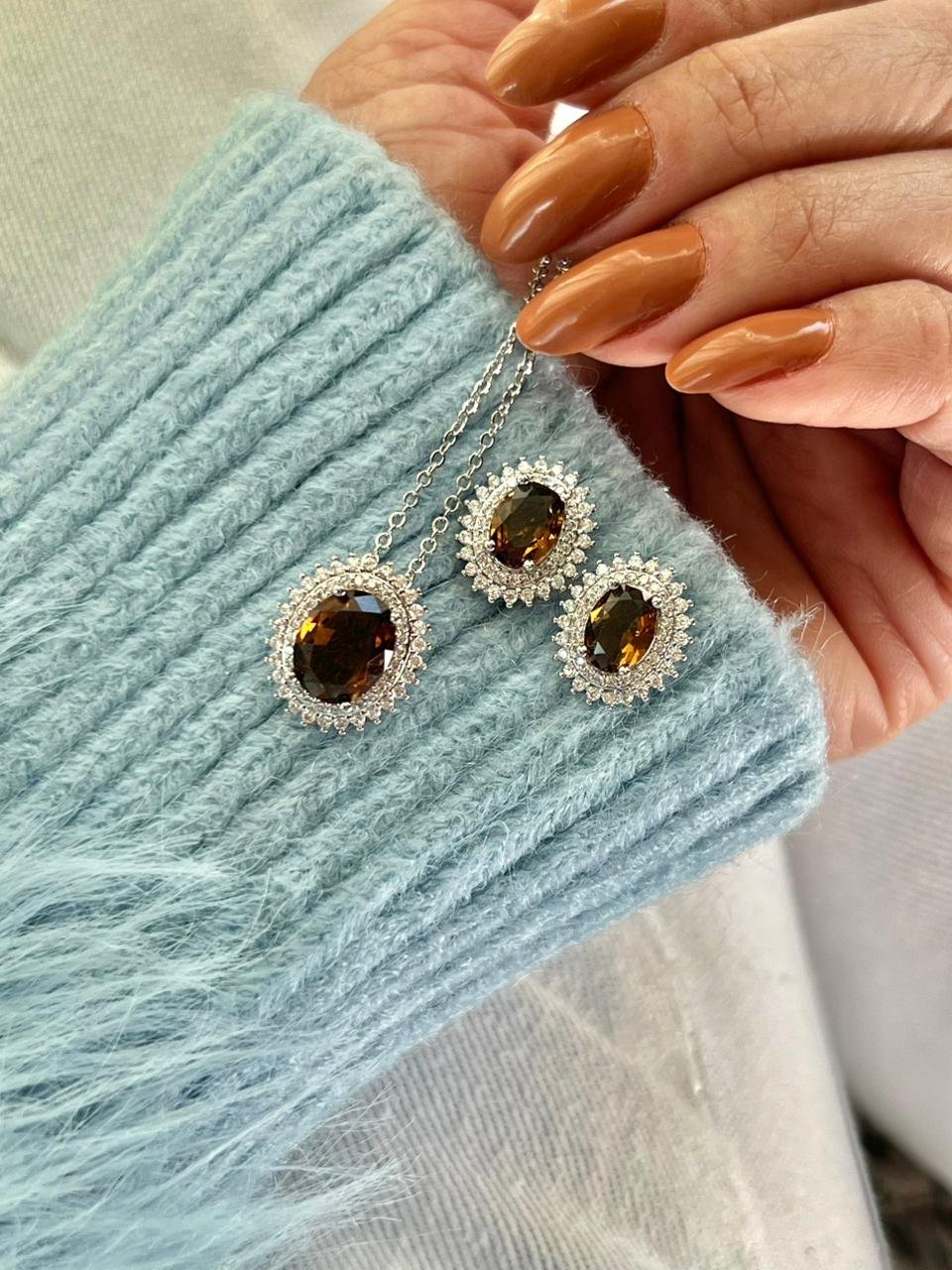 Conjunto Oval com Zircônia Cristal e Café em Banho de Ródio Branco : Cj762 5.0 (1) Facebook X Pinterest WhatsApp : - + : OK × : 1x R$ 0,00 : R$ 0,00 × : -Pedra: -Corrente: 45cm + 5cm -Cor: -Banho: Banho de Ródio Branco (Antialérgico) -Garantia: 1 ano Banho e Zircônia