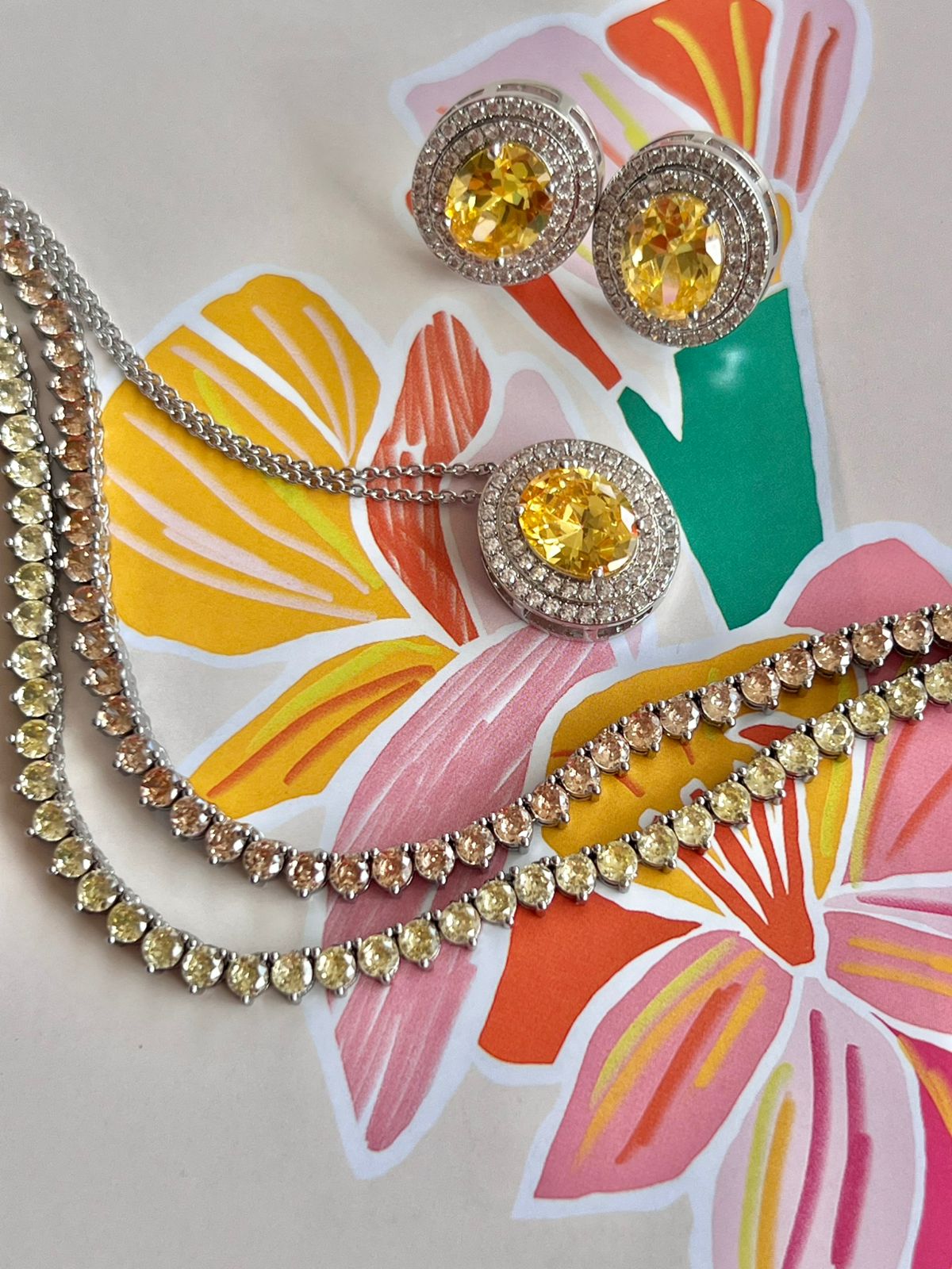 Conjunto Oval com Zircônia Cristal e Citrino em Banho de Ródio Branco : Cj676 5.0 (1) Facebook X Pinterest WhatsApp : - + : OK × : 1x R$ 0,00 : R$ 0,00 × : -Pedra: -Corrente: 45cm + 5cm -Cor: -Banho: Banho de Ródio Branco (Antialérgico) -Garantia: 1 ano Banho e Zircônia