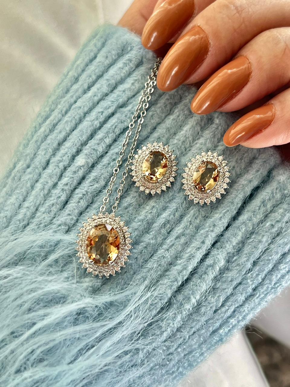 Conjunto Oval com Zircônia Cristal e Mocha Mousse em Banho de Ródio Branco : Cj763 Facebook X Pinterest WhatsApp : - + : OK × : 1x R$ 0,00 : R$ 0,00 × : -Pedra: -Corrente: 45cm + 5cm -Cor: -Banho: Banho de Ródio Branco (Antialérgico) -Garantia: 1 ano Banho e Zircônia
