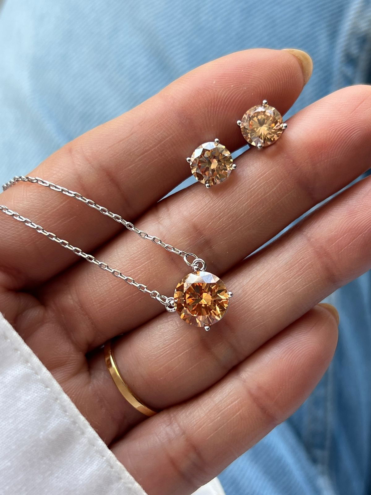 2. Conjunto Ponto de Luz com Zircônia Coffee em Banho de Ródio Branco