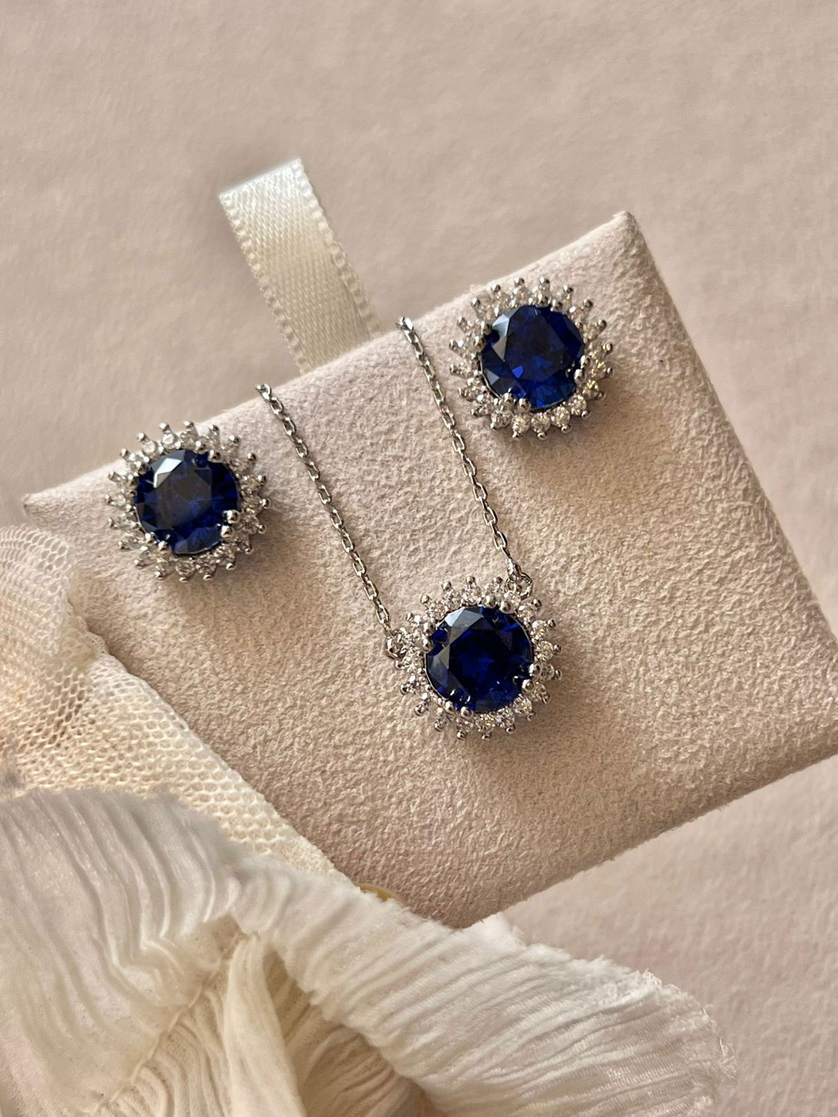 Conjunto Redondo com Zircônia Azul Safira e Cristal em Banho de Ródio Branco : Cj683 5.0 (1) Facebook X Pinterest WhatsApp : - + : OK × : 1x R$ 0,00 : R$ 0,00 × : -Pedra: -Corrente: 45cm + 5cm -Cor: -Banho: Banho de Ródio Branco (Antialérgico) -Garantia: 1 ano Banho e Zircônia