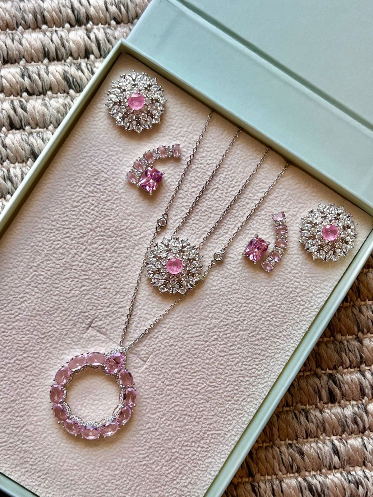 KIT CONJUNTO, COLAR E BRINCOS ROSA CLARO