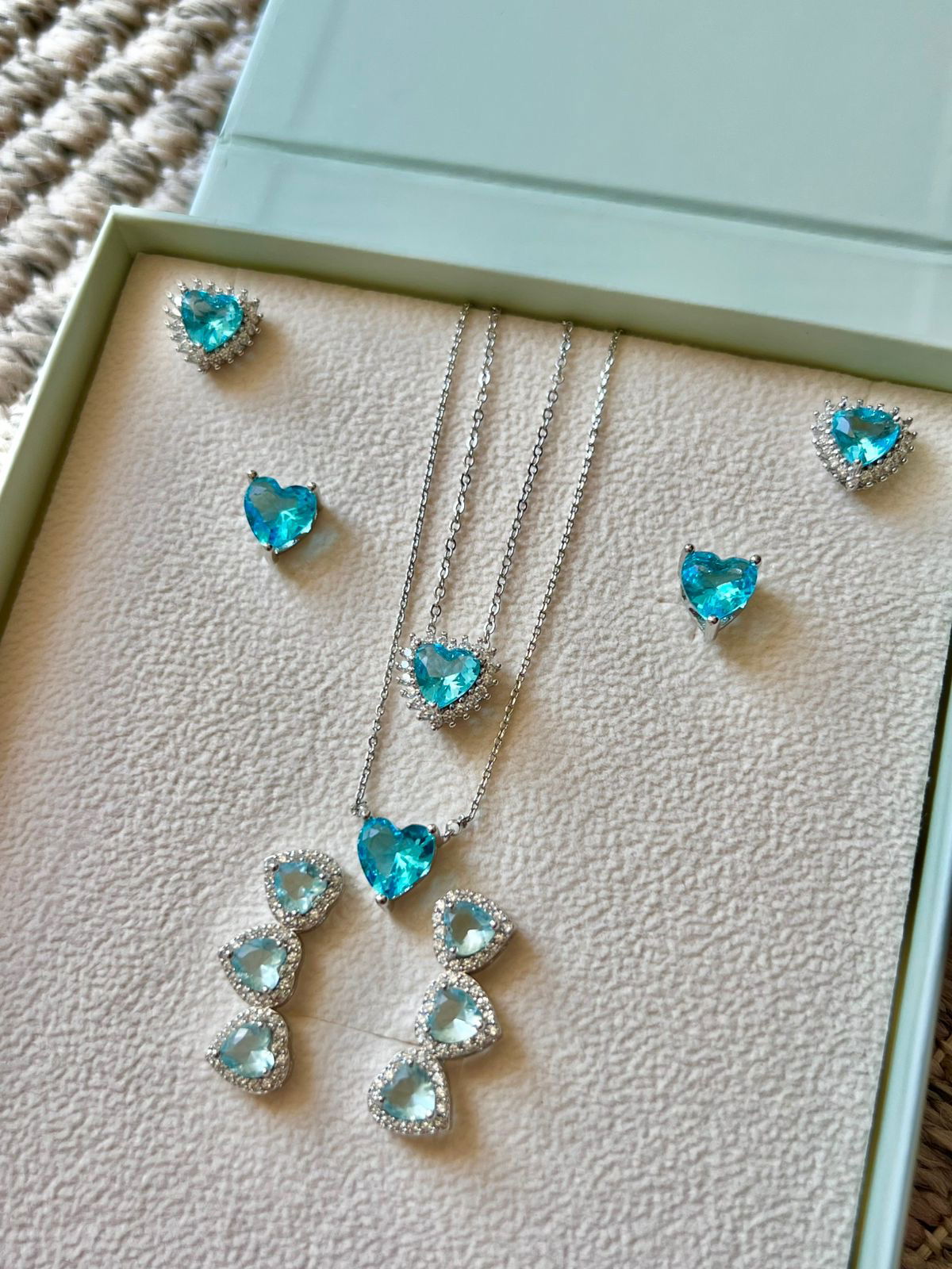 Kit Conjunto e Brinco Água-marinha em Banho de Ródio Branco